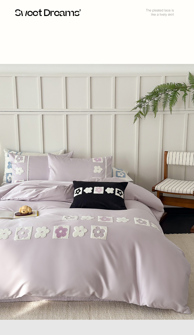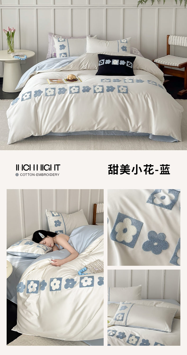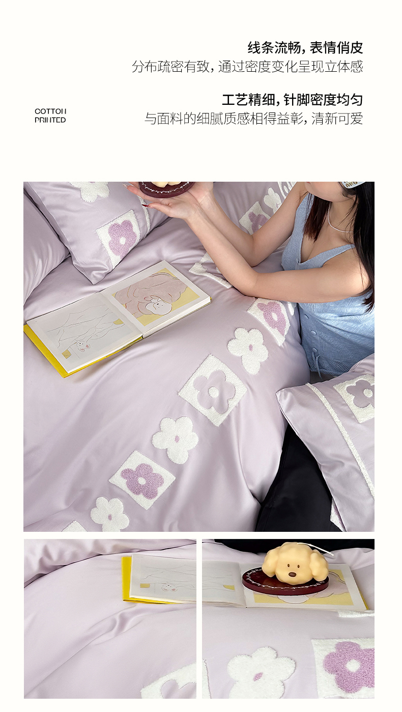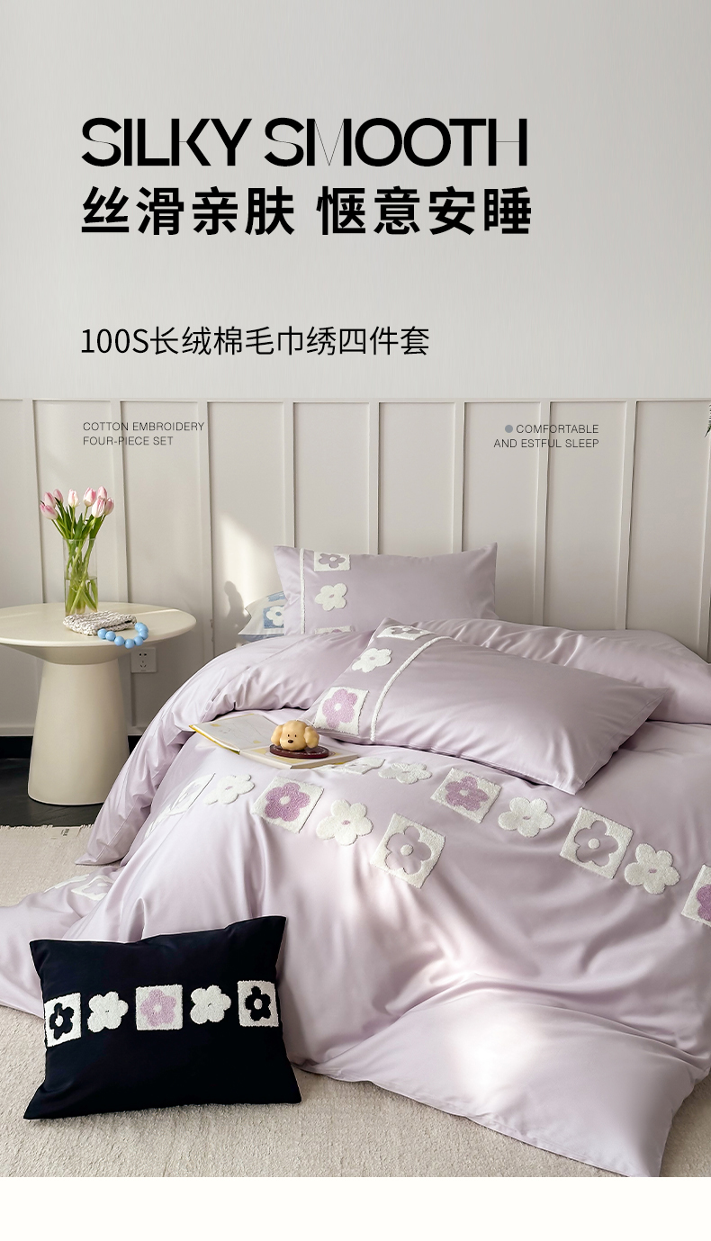 当前位置: 91家纺网 > 商品网购 > 床品套件 > 四件套 > 长绒棉四件套 > (总)极简 2026新款100S长绒棉全棉纯棉毛巾绣四件套-甜美小花