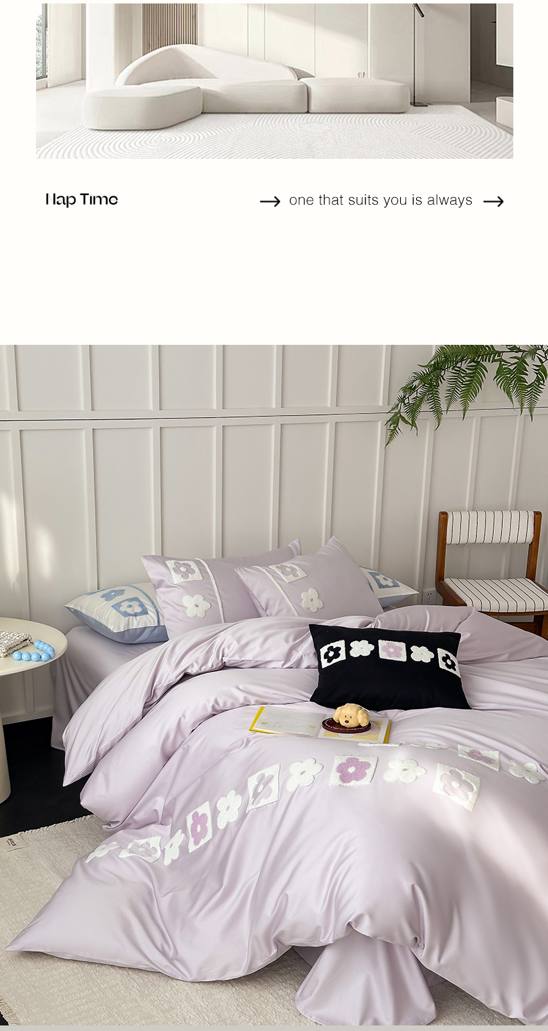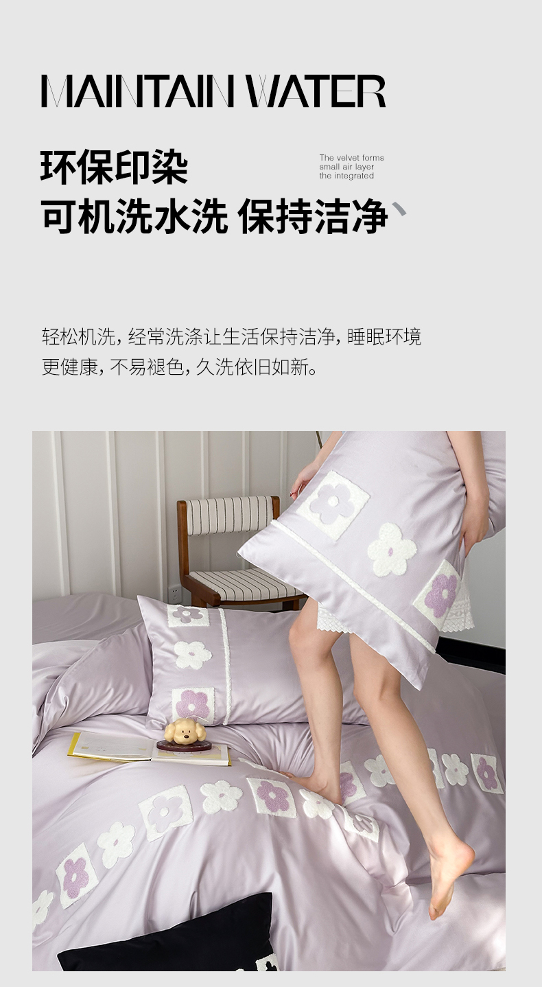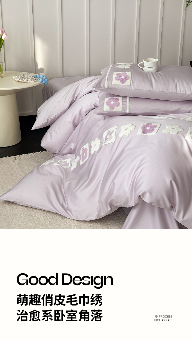 当前位置: 91家纺网 > 商品网购 > 床品套件 > 四件套 > 长绒棉四件套 > (总)极简 2026新款100S长绒棉全棉纯棉毛巾绣四件套-甜美小花