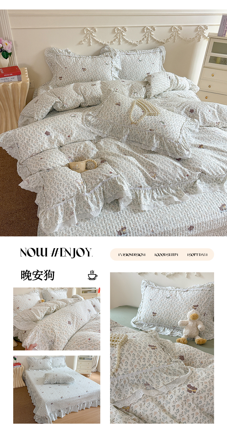 (总)吾欢心 2026新款古法水洗棉韩版公主风双层花边四件套,赫拉花园,花间拾梦,花开半夏,花仙子,花园漫步,花园小熊,花韵,快乐小狗,梨花梦,露花浓,梦幻岛,晚安狗,嫣然如梦