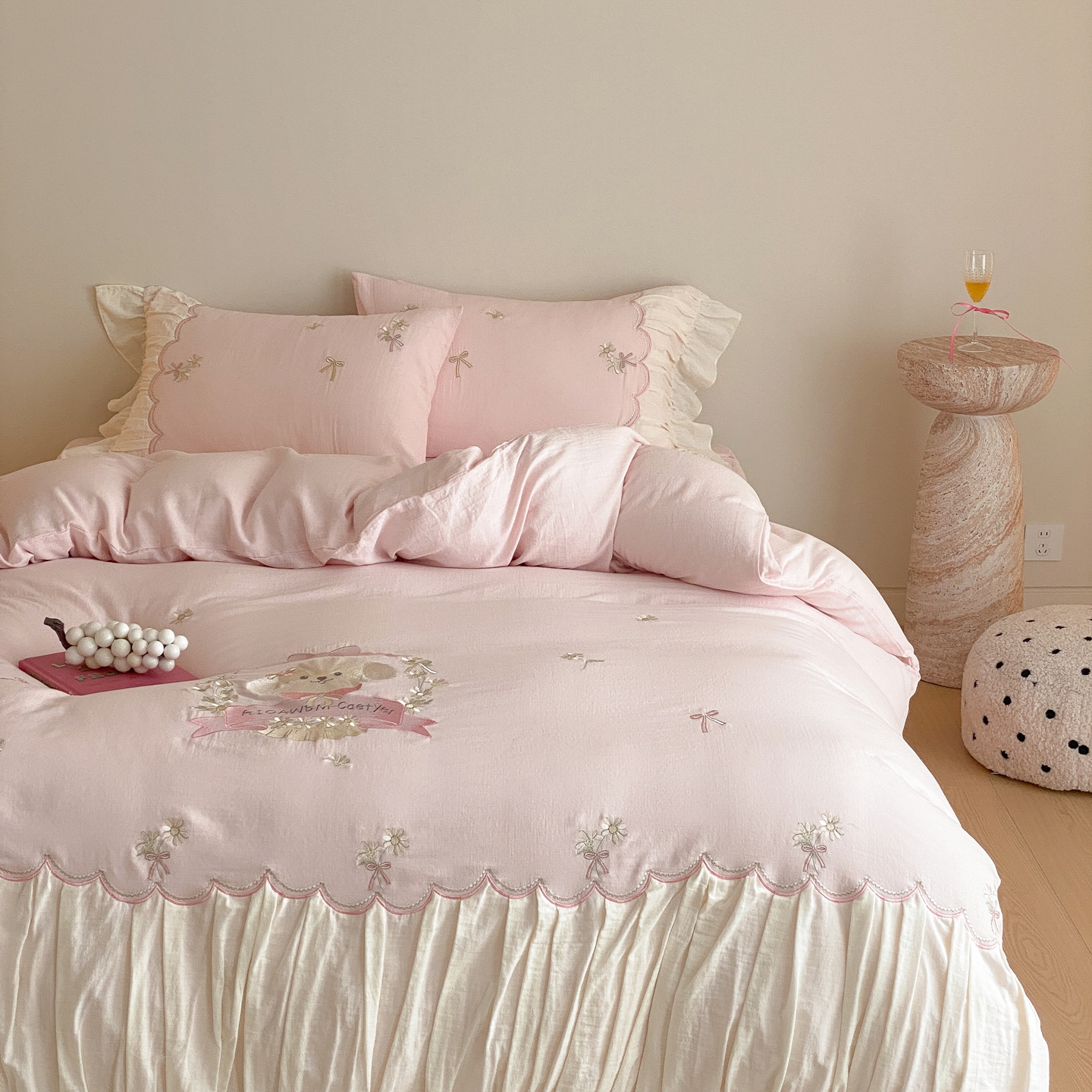 (总)曼布缇 2026新款A类双层纱全棉纯棉工艺款四件套-萌贝尔,萌贝尔-粉,萌贝尔-蓝