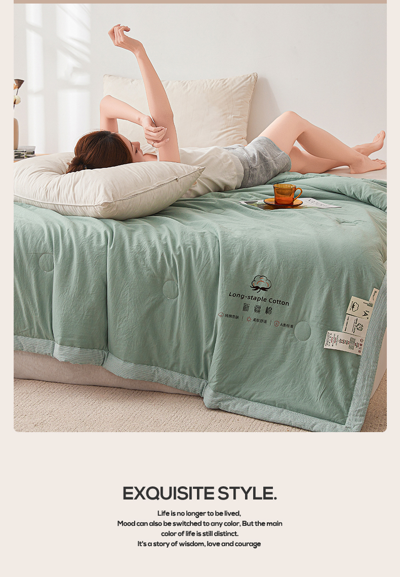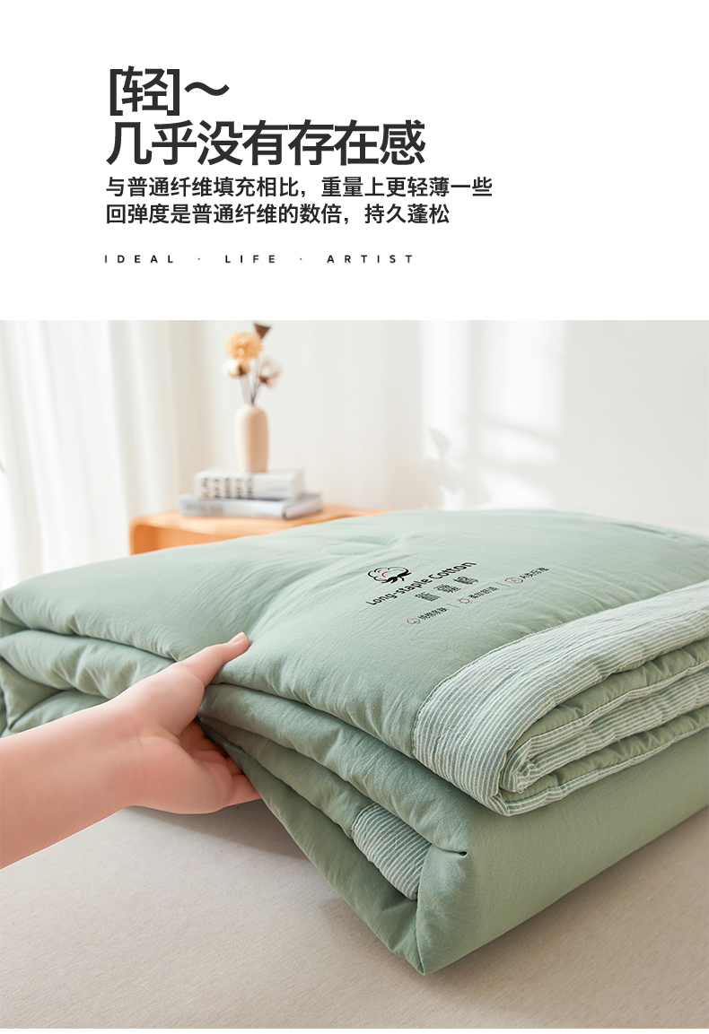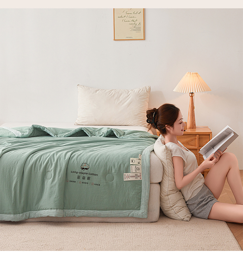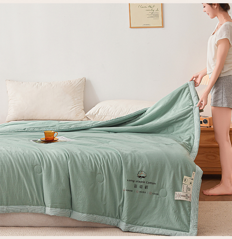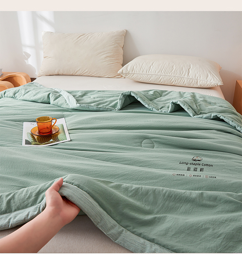商品名称:创优家纺 2026新款棉花夏被无印风纯色新疆棉夏凉被空调被棉花夏被棉花被子百分百新疆棉(专版烫画 盗版必究) 新疆棉-松绿