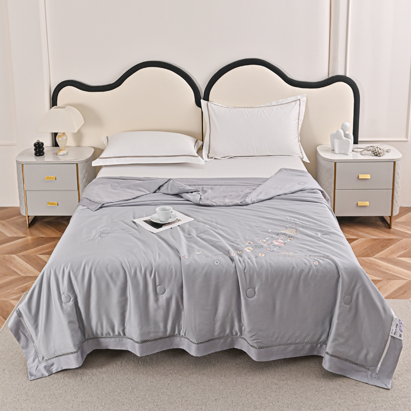 太阳羽家纺 2026新款天丝绣花镂空夏被夏凉被空调被--深呼吸 深呼吸-灰色