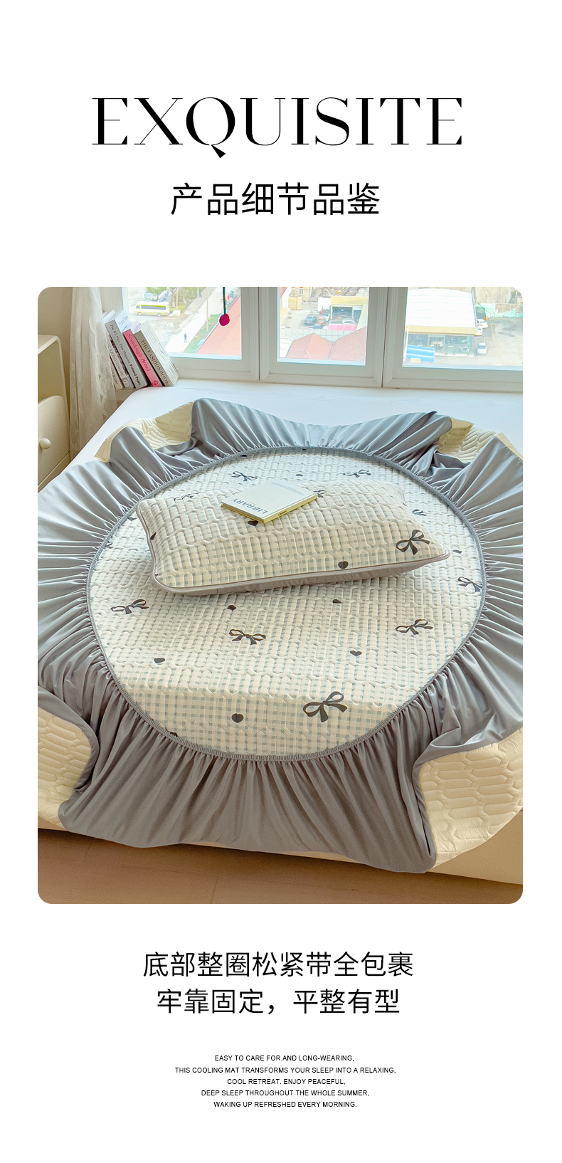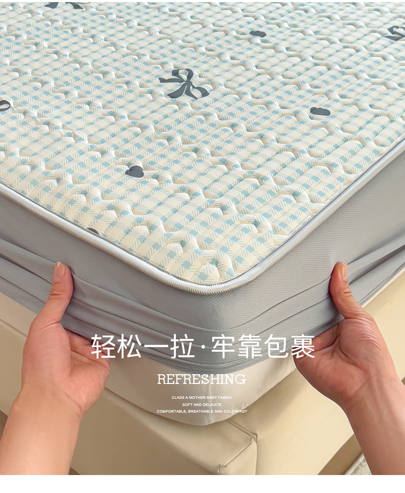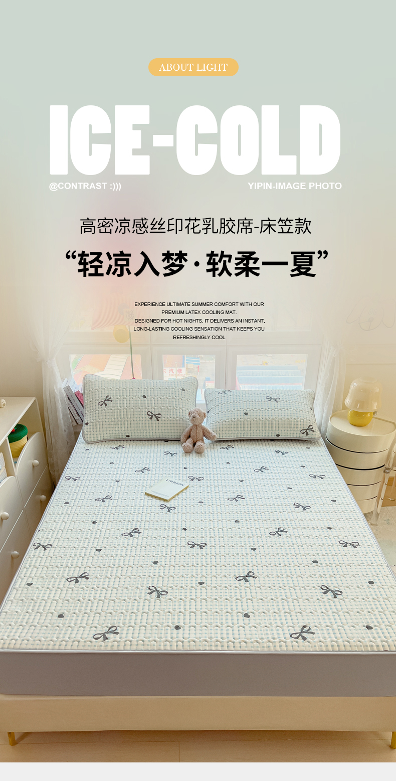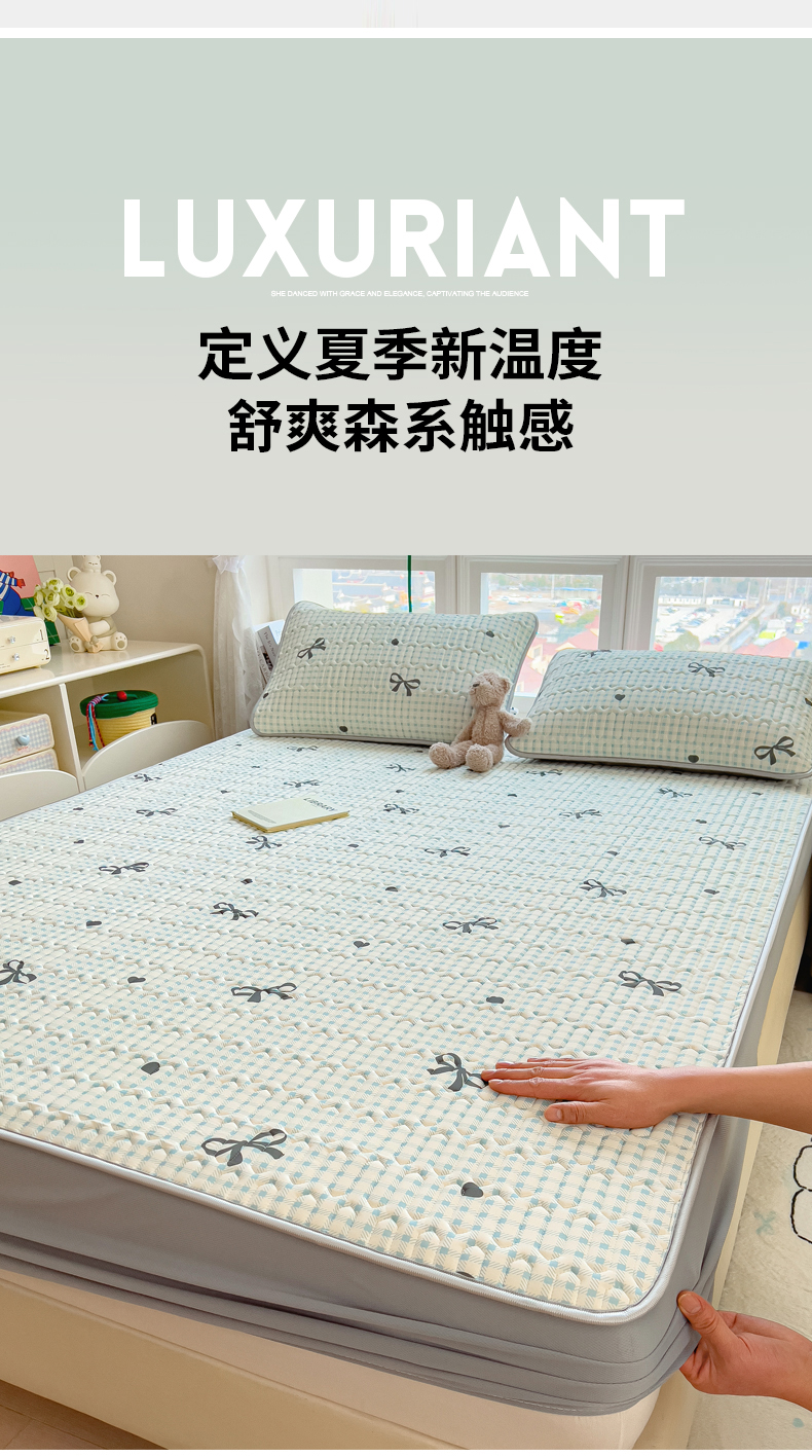 (总)丝羽坊 2026新款高密凉感丝印花乳胶凉席-床笠款,雾蓝花影,萌宠拼格,粉黛萌兔,格纹蝶影,奶白萌犬,浅蓝熊趣,糖果猫咪,彩糖点点,林间私语,薄荷甜心,爱的圈圈,春意盎然,奶绿汪仔,小白兔,小企鹅,小兔派对,星月