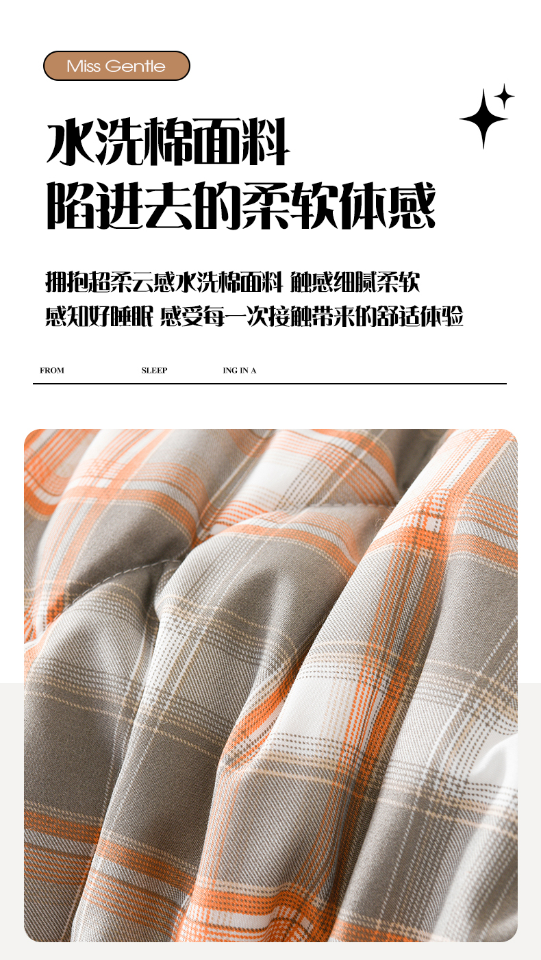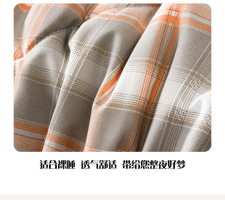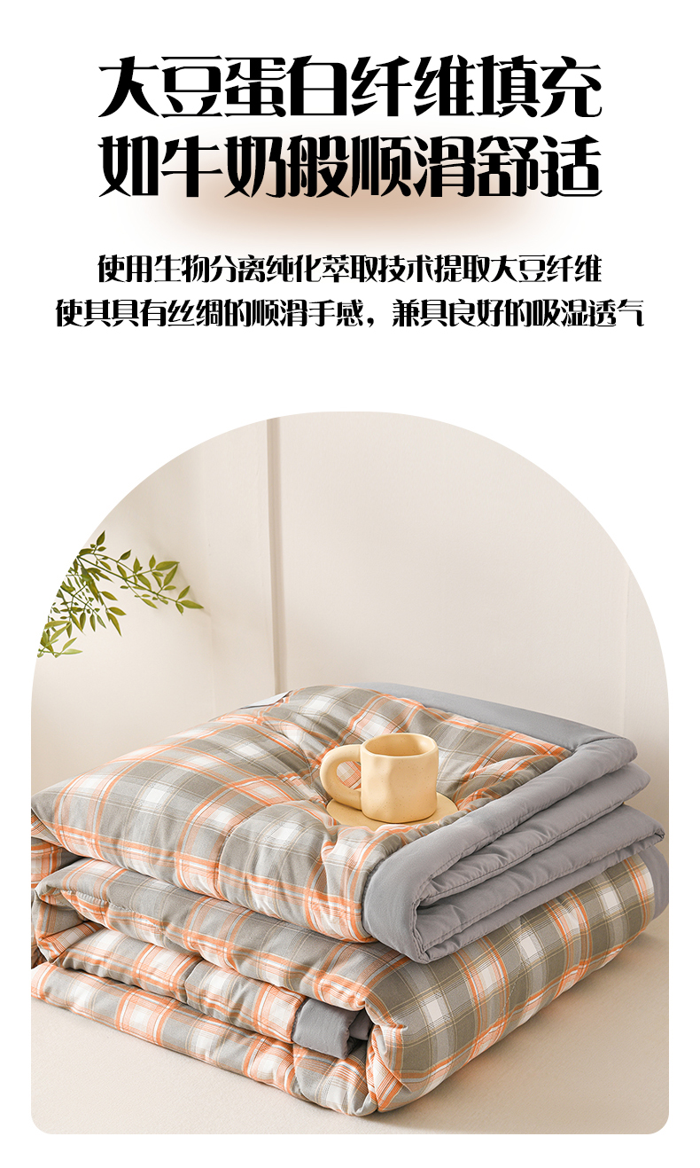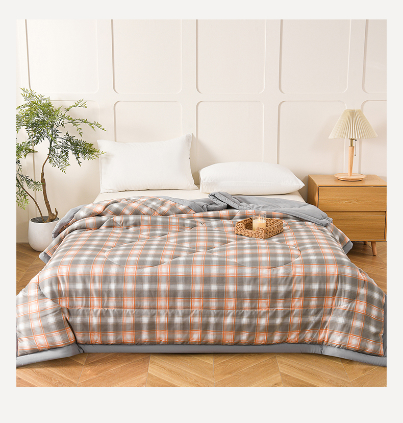 商品名称:壹张床 2026新款无印风A类水洗棉大豆纤维夏凉被夏被空调被 极简-橙灰格