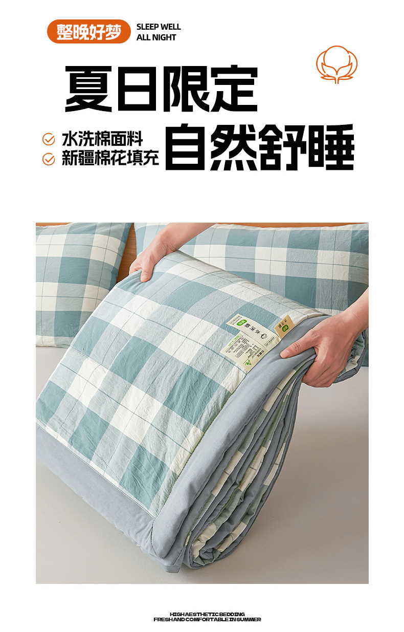 商品名称:牛魔王家居 2026新款A类水洗棉新疆棉花夏被 被子被芯 绿大格