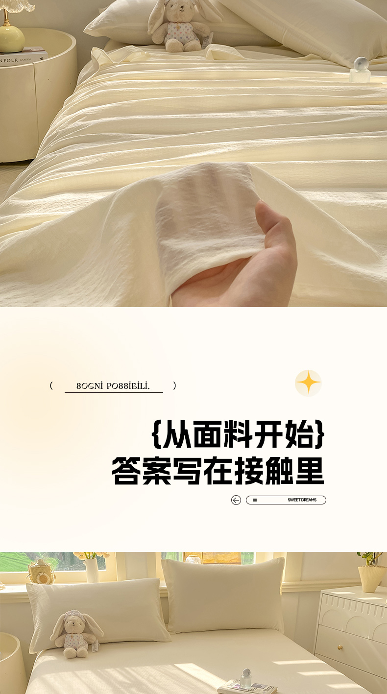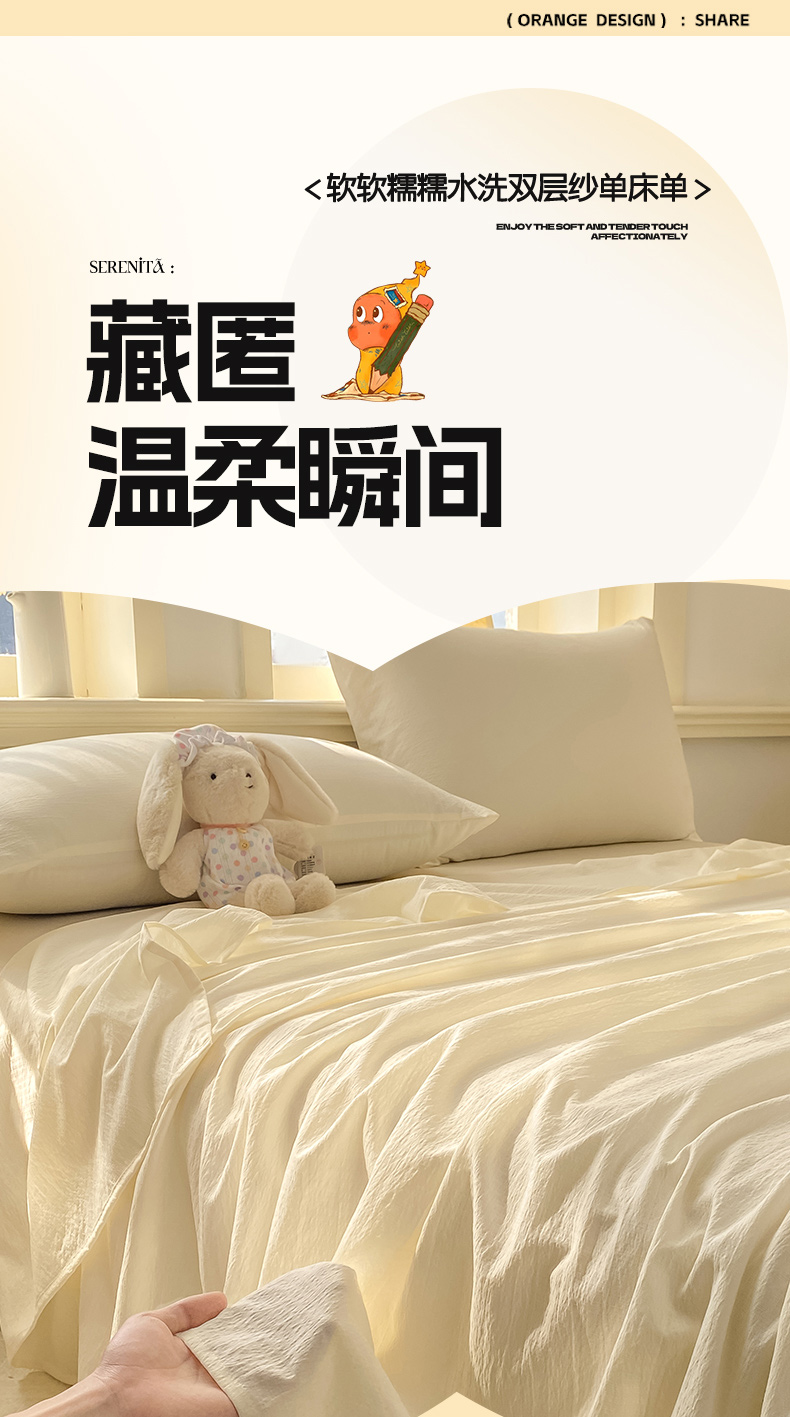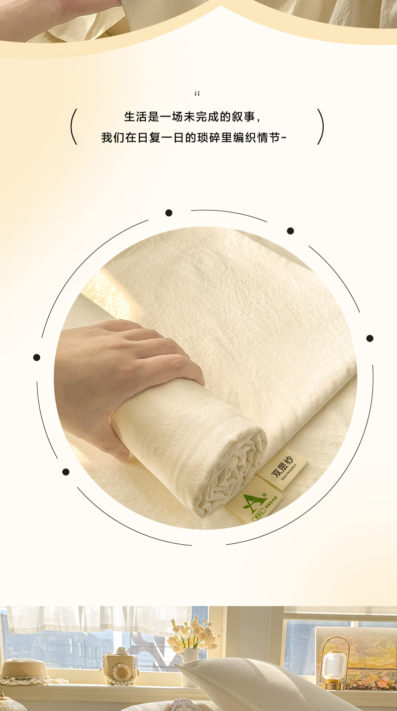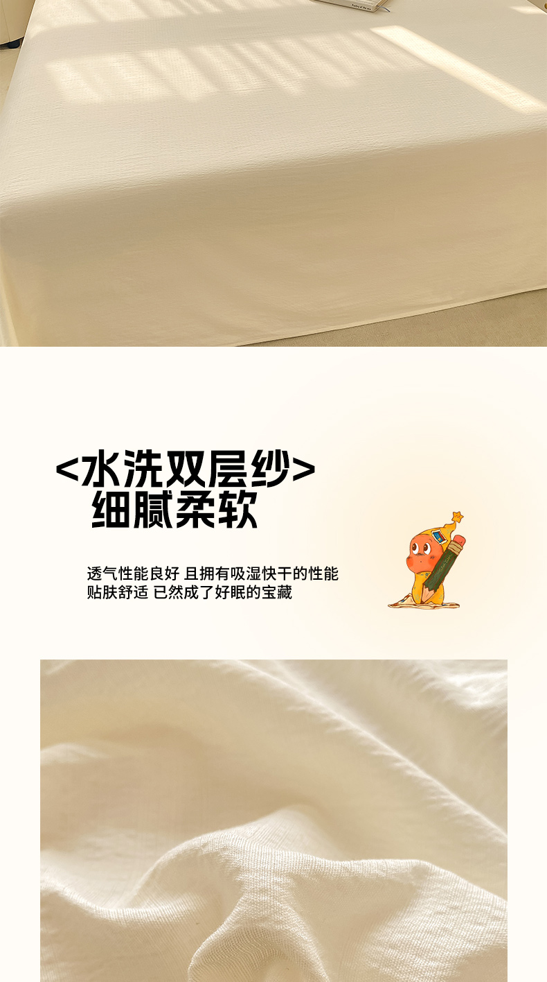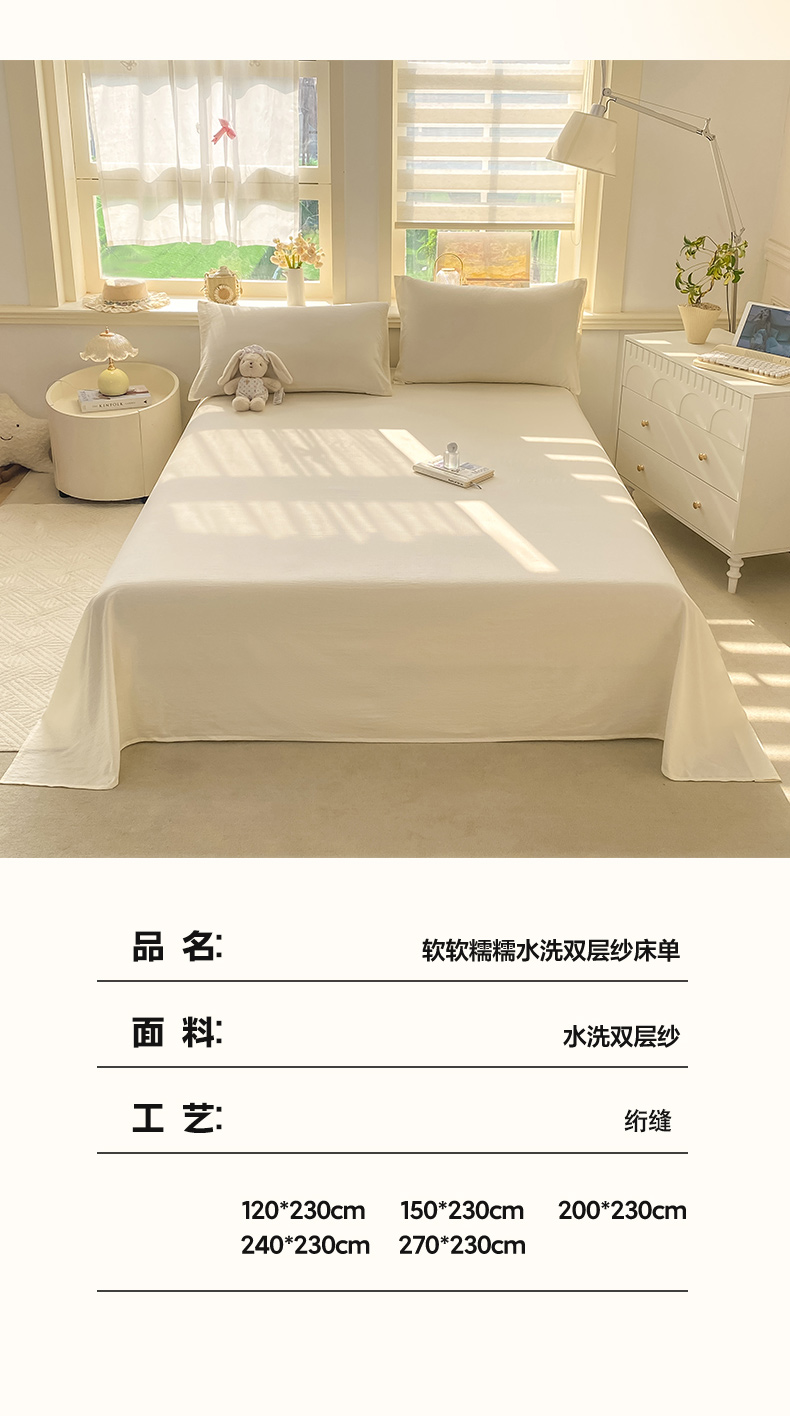 • 91家纺网 家纺一手货源 找家纺 晓时候 2026新款A类云感双层纱床单三件套单品单件床单 云朵白