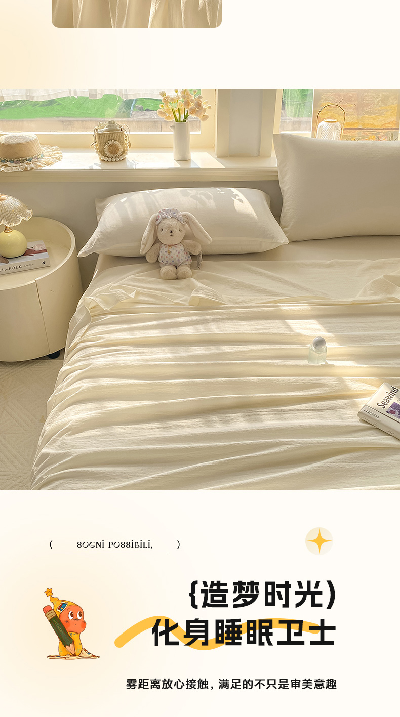 (总)晓时候 2026新款A类云感双层纱床单三件套单品单件床单,安然入夏,缤纷水果,冰川灰,豆蔻,多彩波点,繁花,蝴蝶结-紫,花间兔,蓝色泡芙狗,洛神花间,萌宠派对,萌萌星星人,奶芙狗,柠檬黄,芊芊花语,牵牛紫,俏皮狗,青春蓝,青竹绿,甜甜西高地,甜心女孩,小确幸,星星喵,樱花粉,云朵白