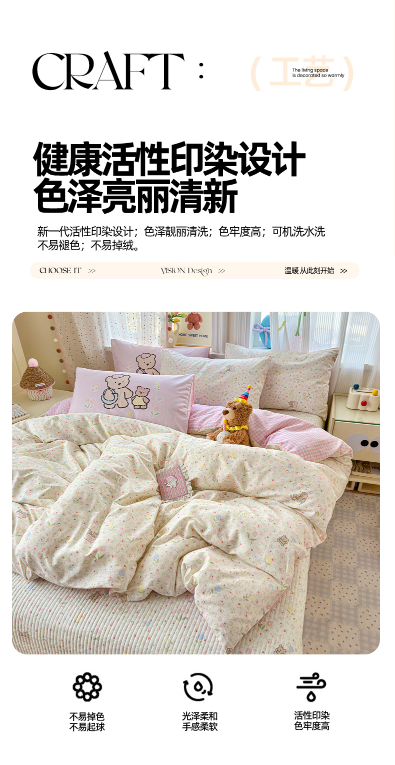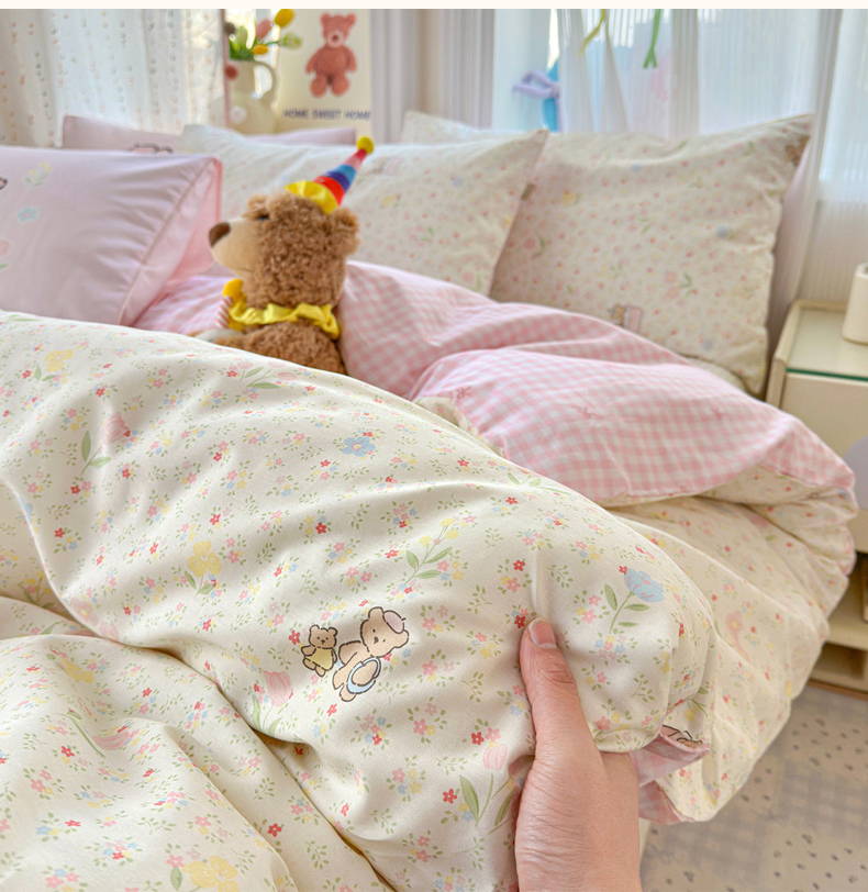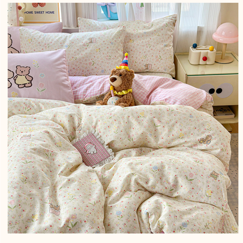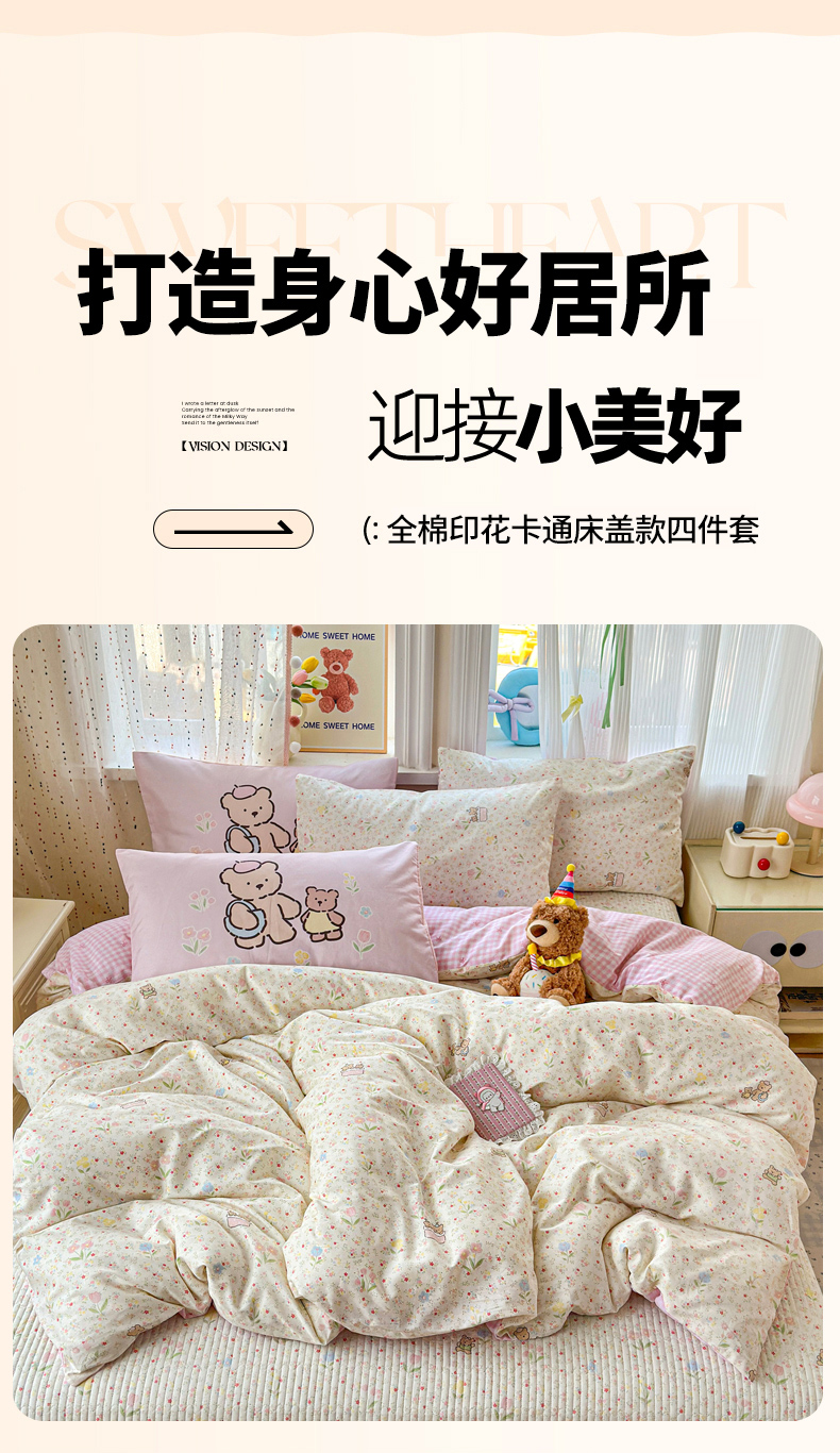 当前位置: 91家纺网 > 商品网购 > 床品套件 > 四件套 > 全棉普通四件套 > Sweet dreams甜梦 2026新款小清新卡通全棉纯棉印花床盖四件套 碎花小熊