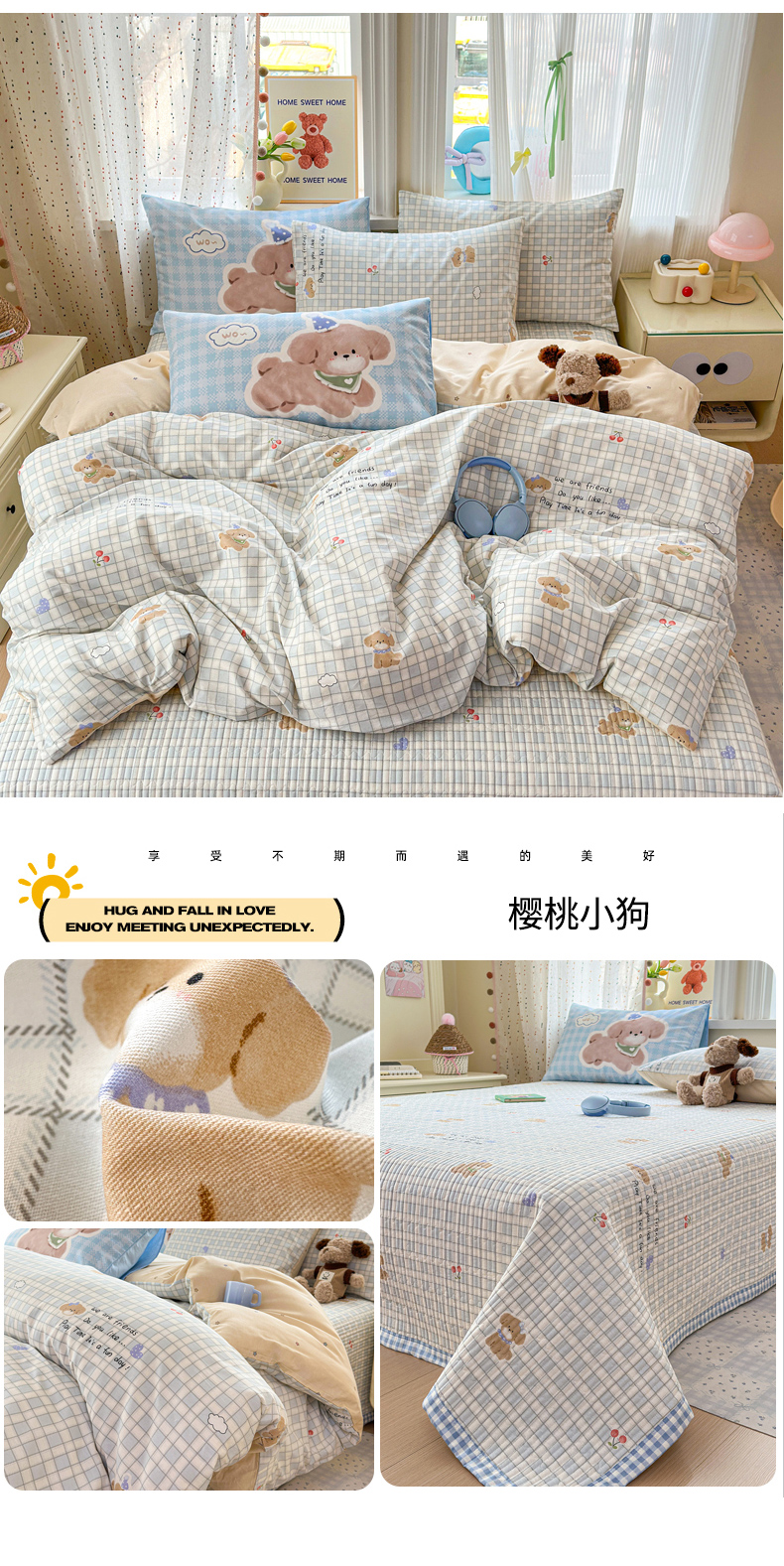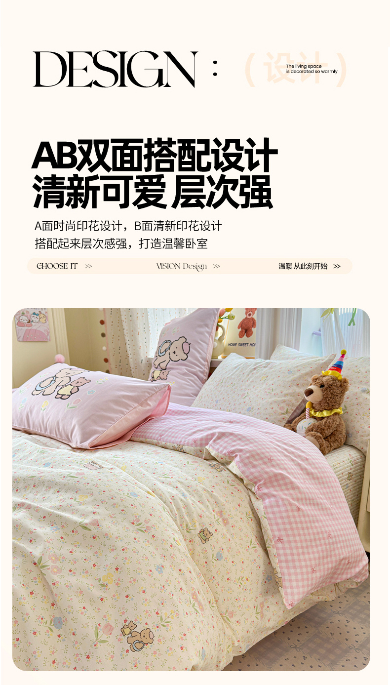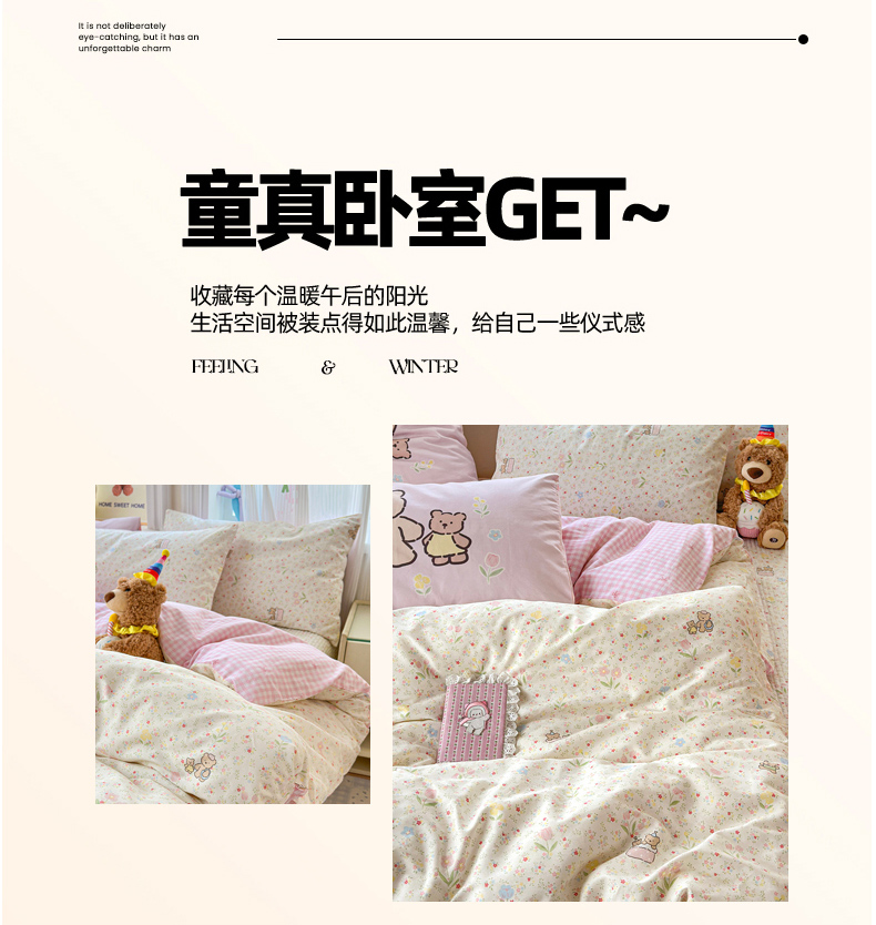 当前位置: 91家纺网 > 商品网购 > 床品套件 > 四件套 > 全棉普通四件套 > Sweet dreams甜梦 2026新款小清新卡通全棉纯棉印花床盖四件套 碎花小熊