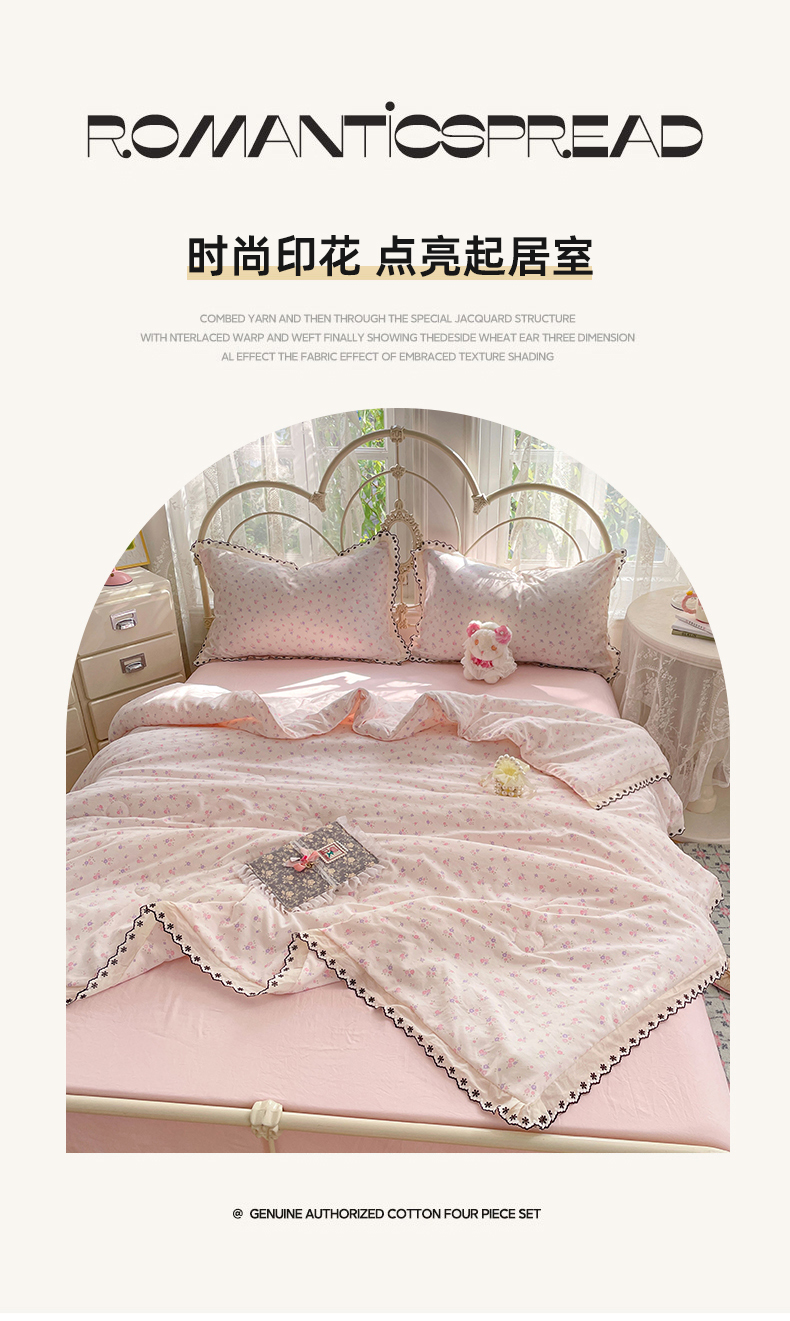 (总)康纳利 2026新款全棉花边夏被古法水洗云感棉空调被夏被四件套,奶黄樱漫,粉樱漫语,粉紫绮梦,花间浅梦,蕾丝粉语,蕾丝蓝韵,春芽浅漾,浅草花语,组合(仅参考)