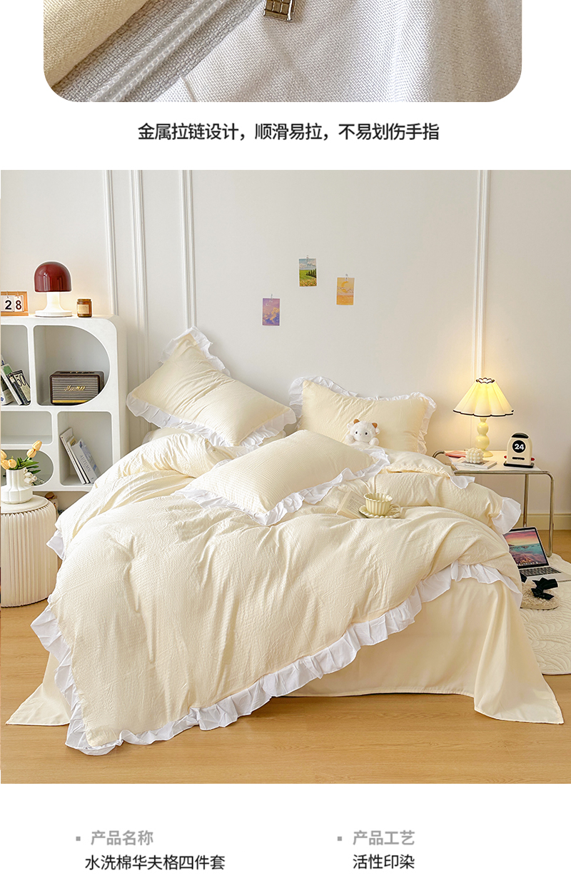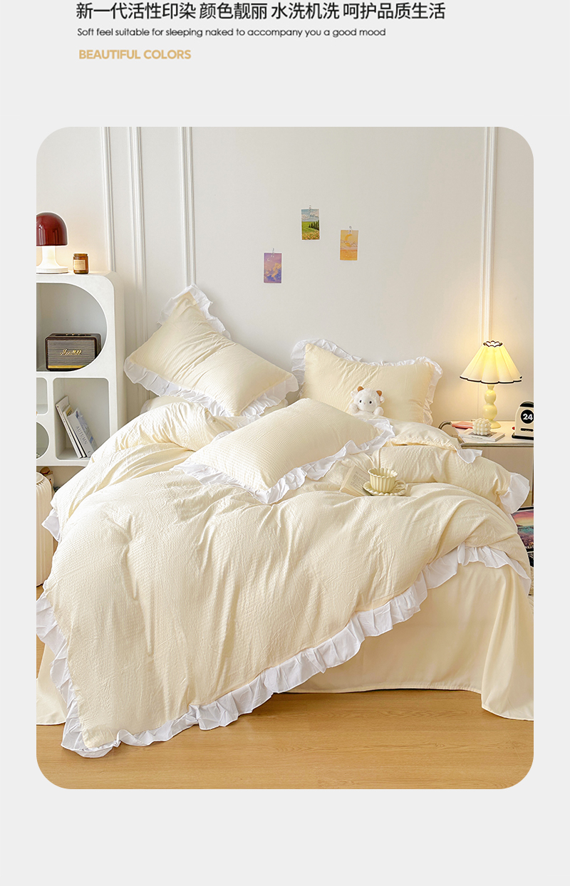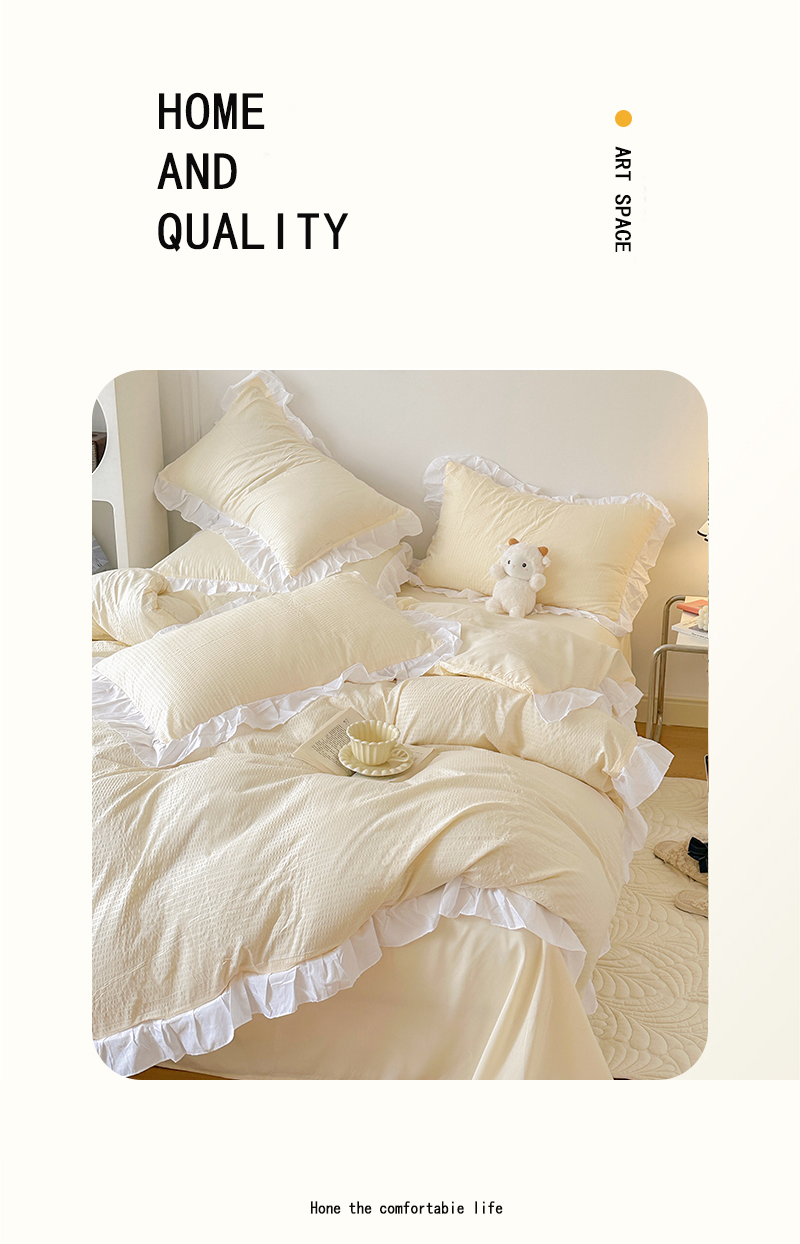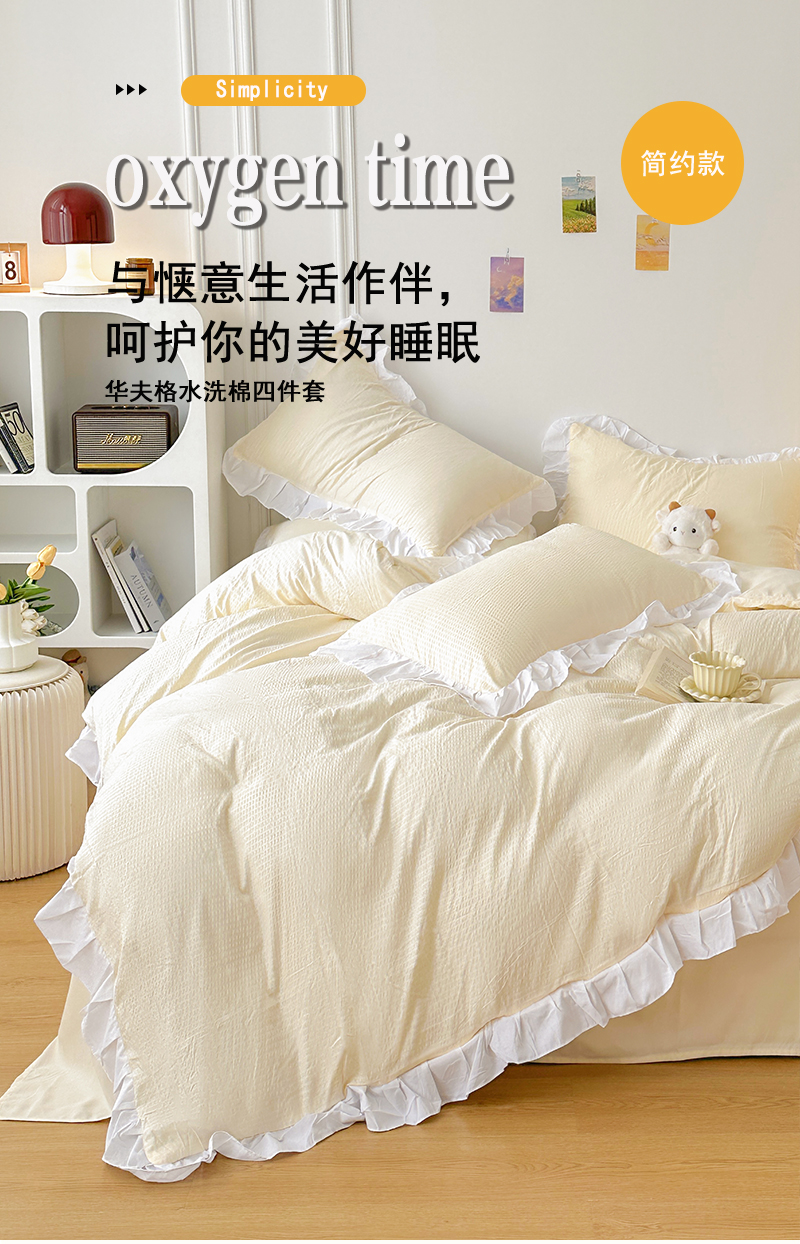 商品名称:啊雅家居 2026新款轻奢韩式花边华夫格四件套-花边款 花边款 梦幻黄