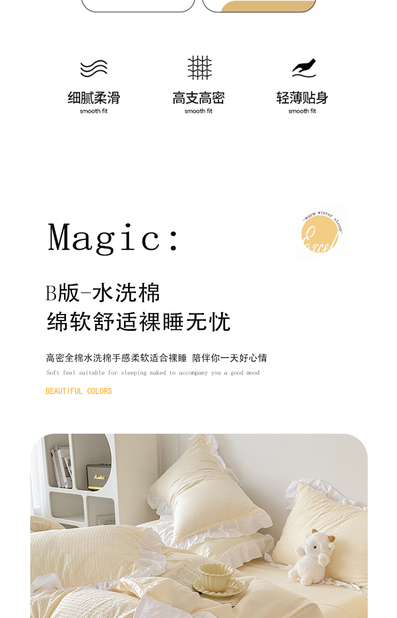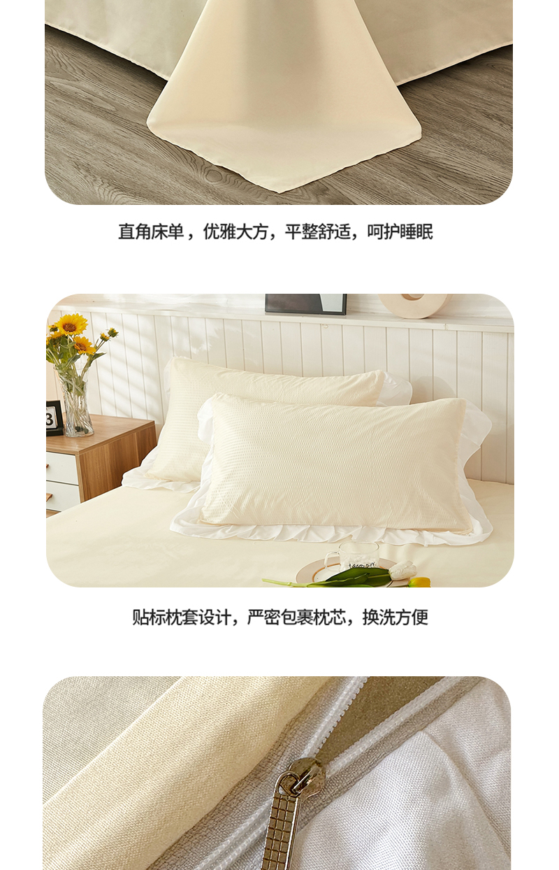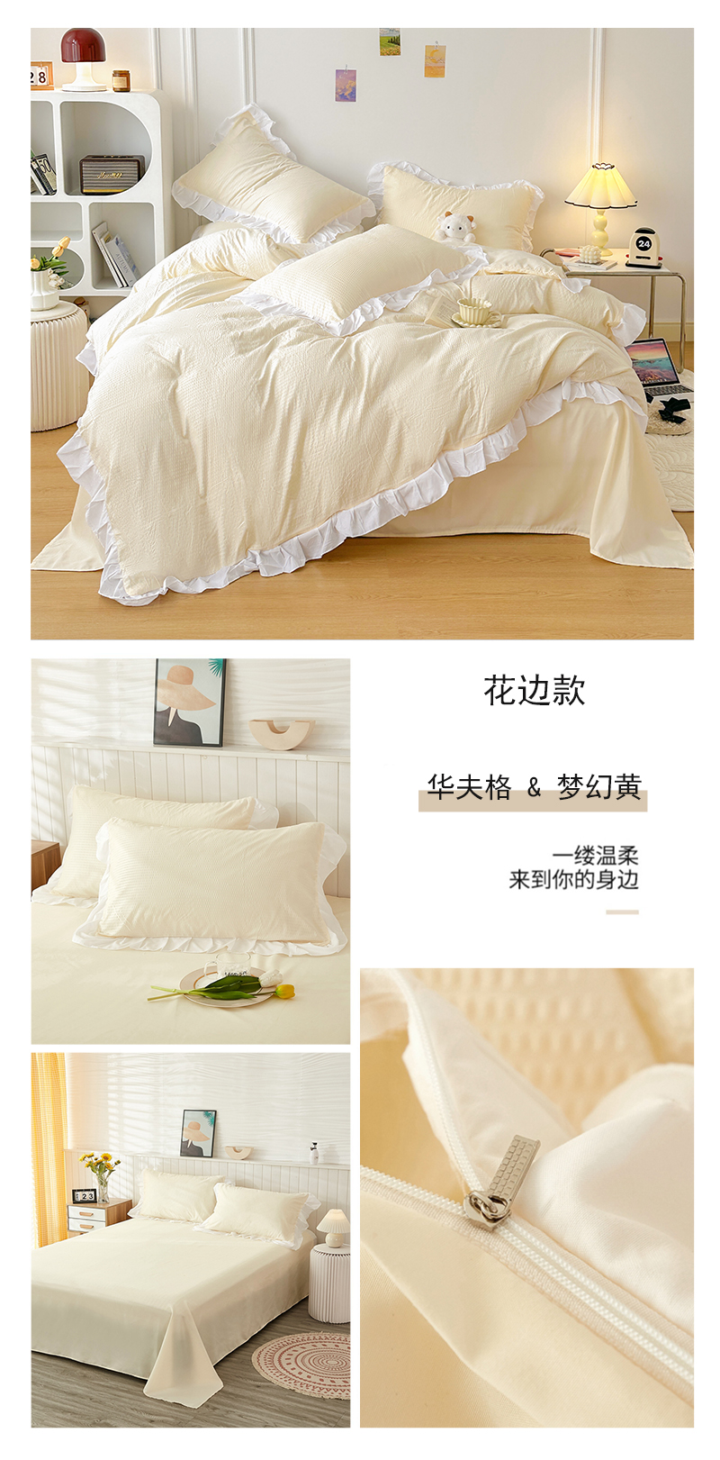 商品名称:啊雅家居 2026新款轻奢韩式花边华夫格四件套-花边款 花边款 梦幻黄