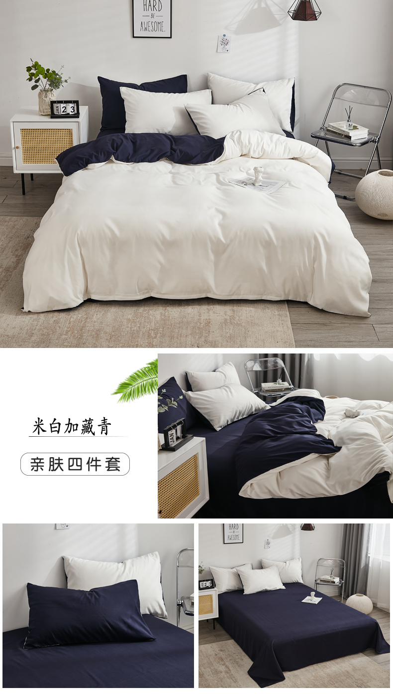 商品名称:啊雅家居 2025新款ins简约学生宿舍双拼纯色磨毛四件套可订制logo 白加藏青