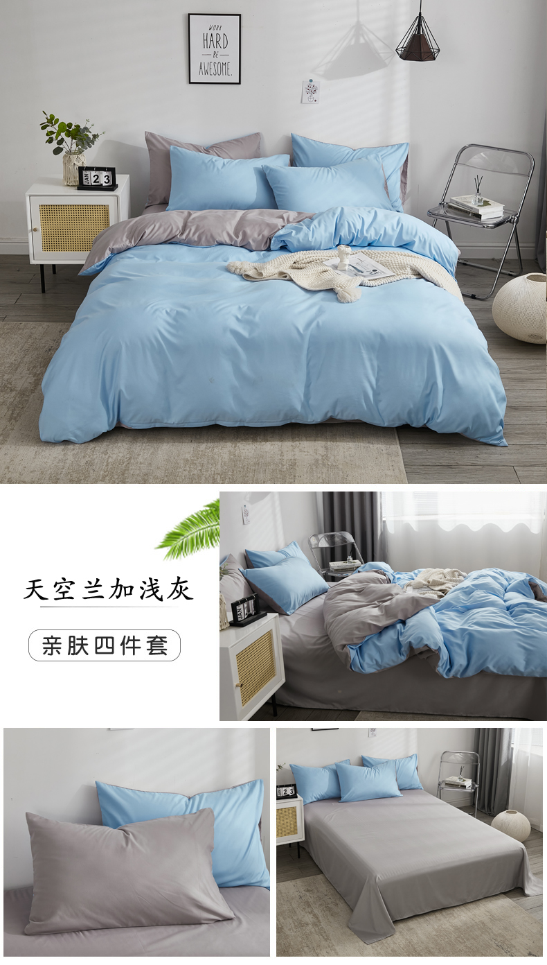 (总)啊雅家居 2025新款ins简约学生宿舍双拼纯色磨毛四件套可订制logo,白加藏青,白色,草绿,红色,克莱因蓝加浅蓝灰,米白加深灰,浅灰加深灰,浅灰,深灰,天空兰加黄,天空兰加浅灰,天空兰