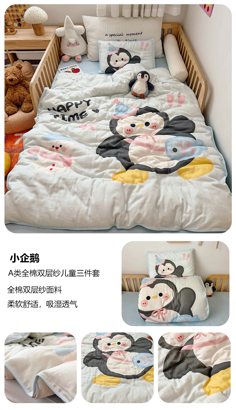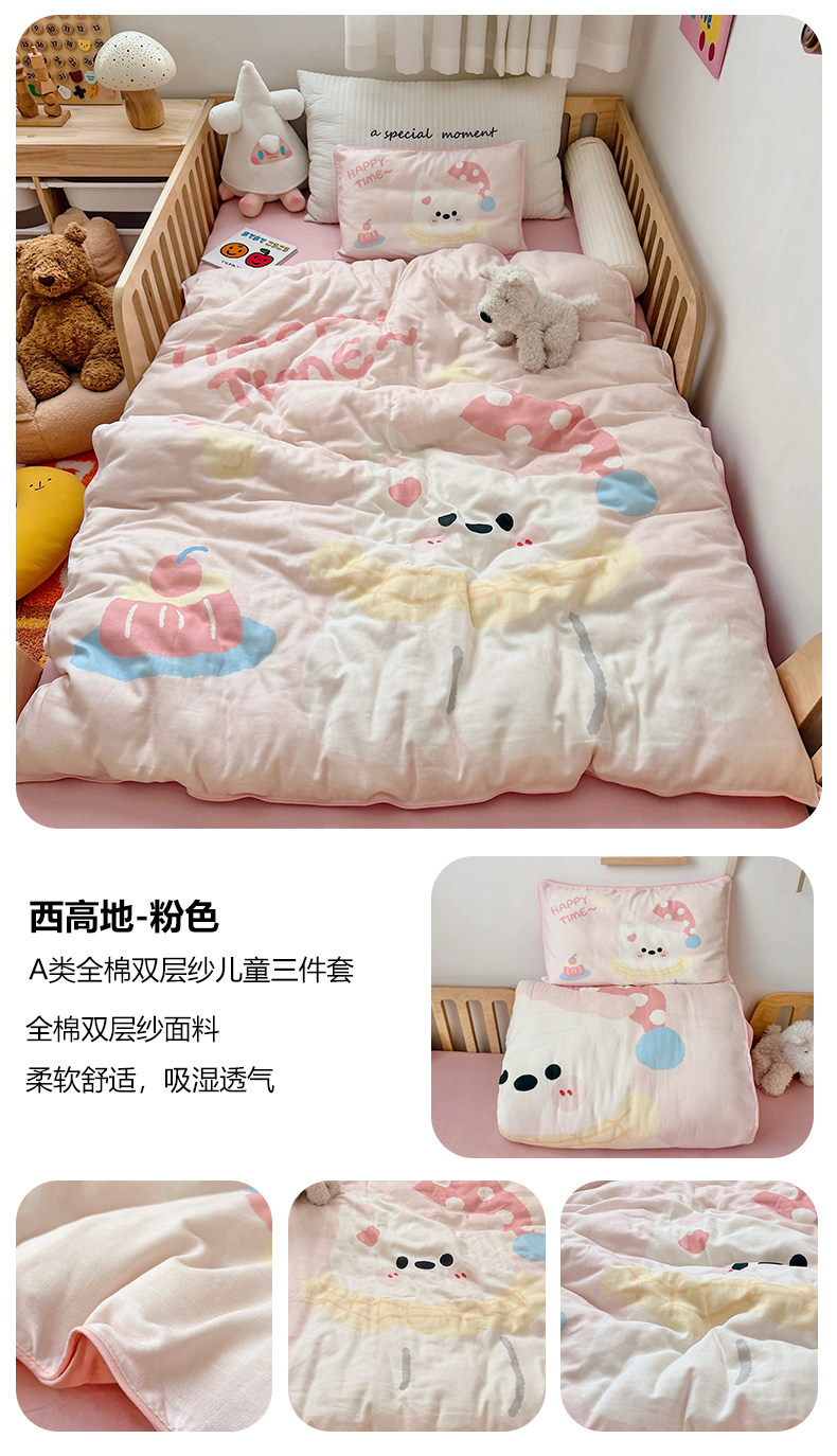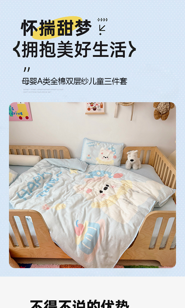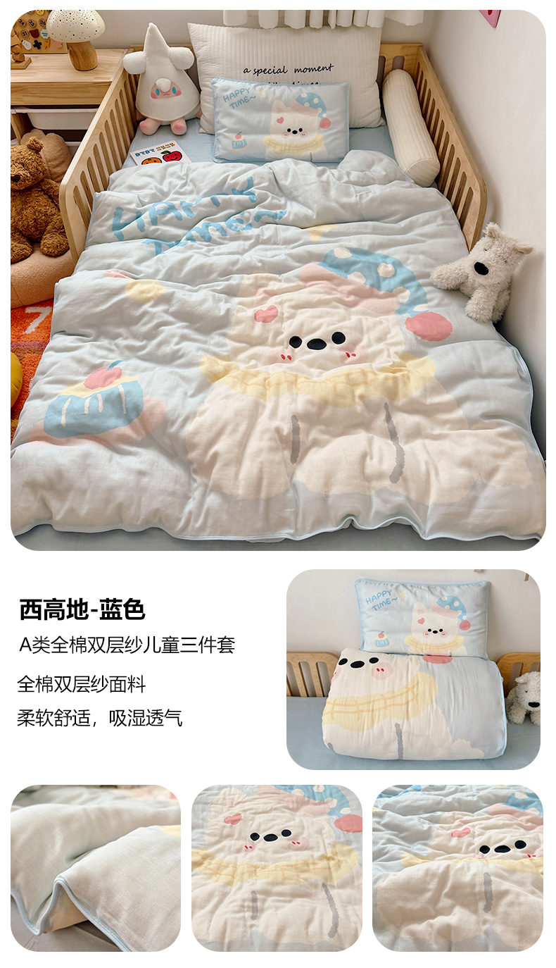 当前位置: 91家纺网 > 商品网购 > 床品套件 > 三件套 > 萌宝家纺 2026新款母婴A类全棉双层纱儿童被套纯棉纱布三件套 快乐小马