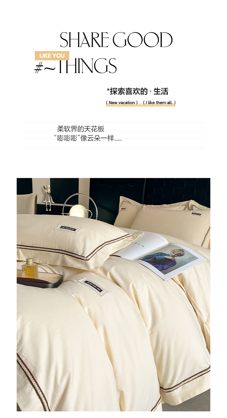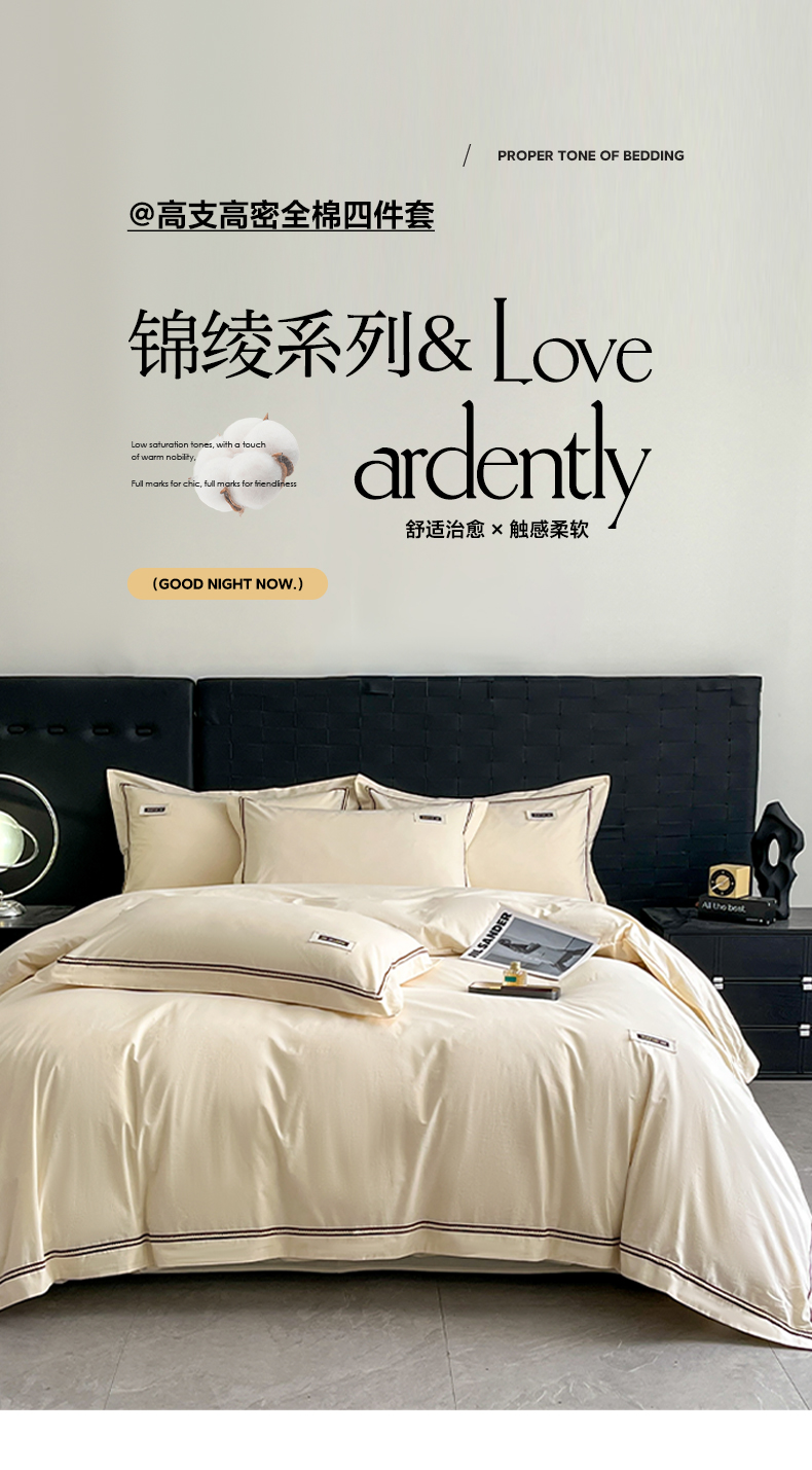 当前位置: 91家纺网 > 商品网购 > 床品套件 > 四件套 > 全棉普通四件套 > 佳汐蓝家纺 2026春夏新款高支高密全棉纯棉四件套-锦绫系列 锦绫-奶昔白