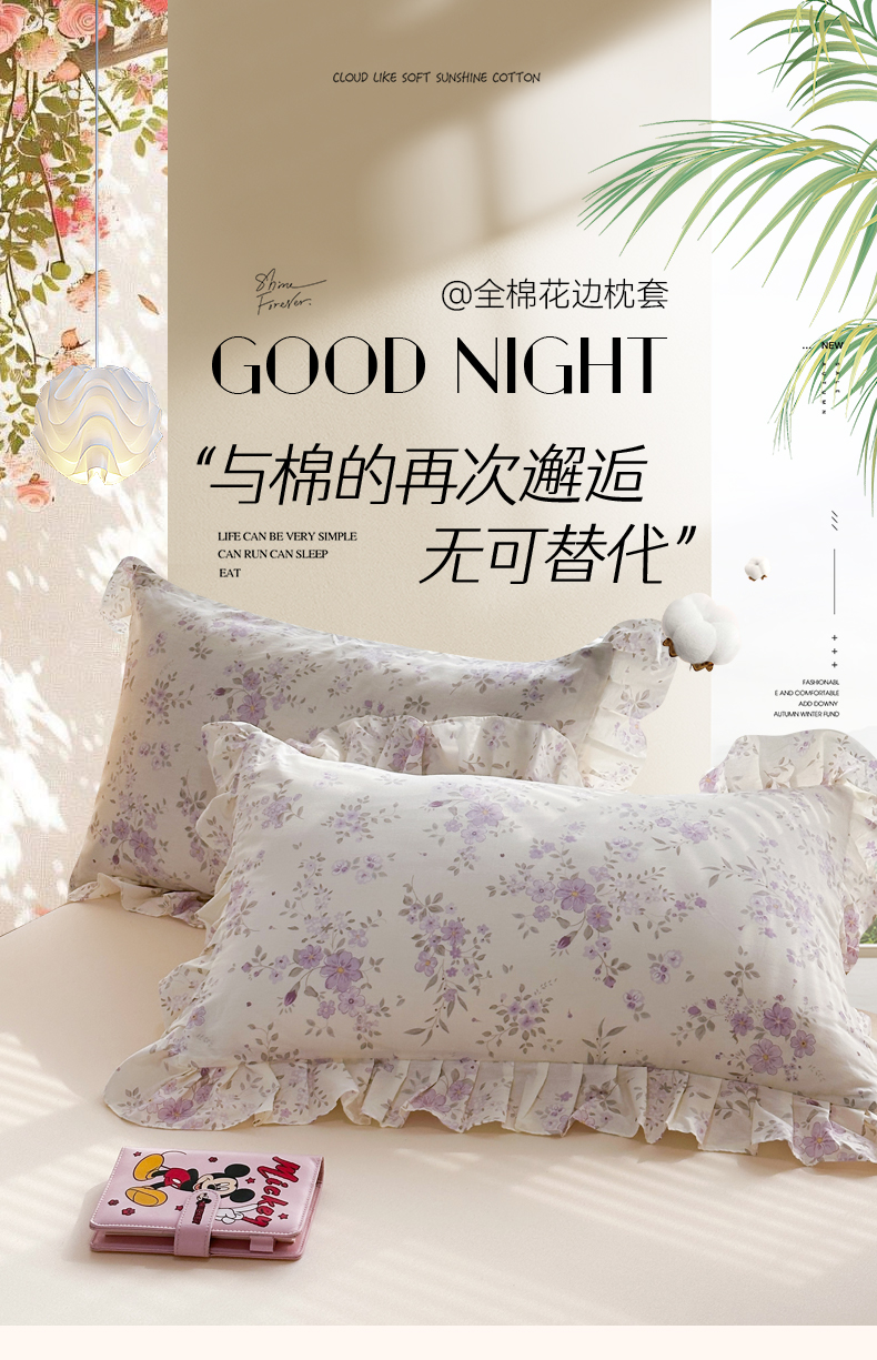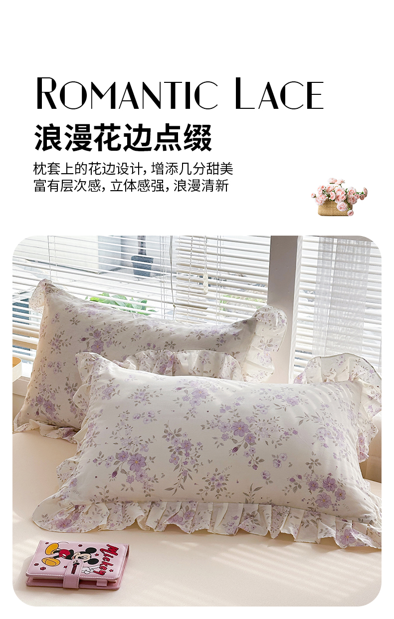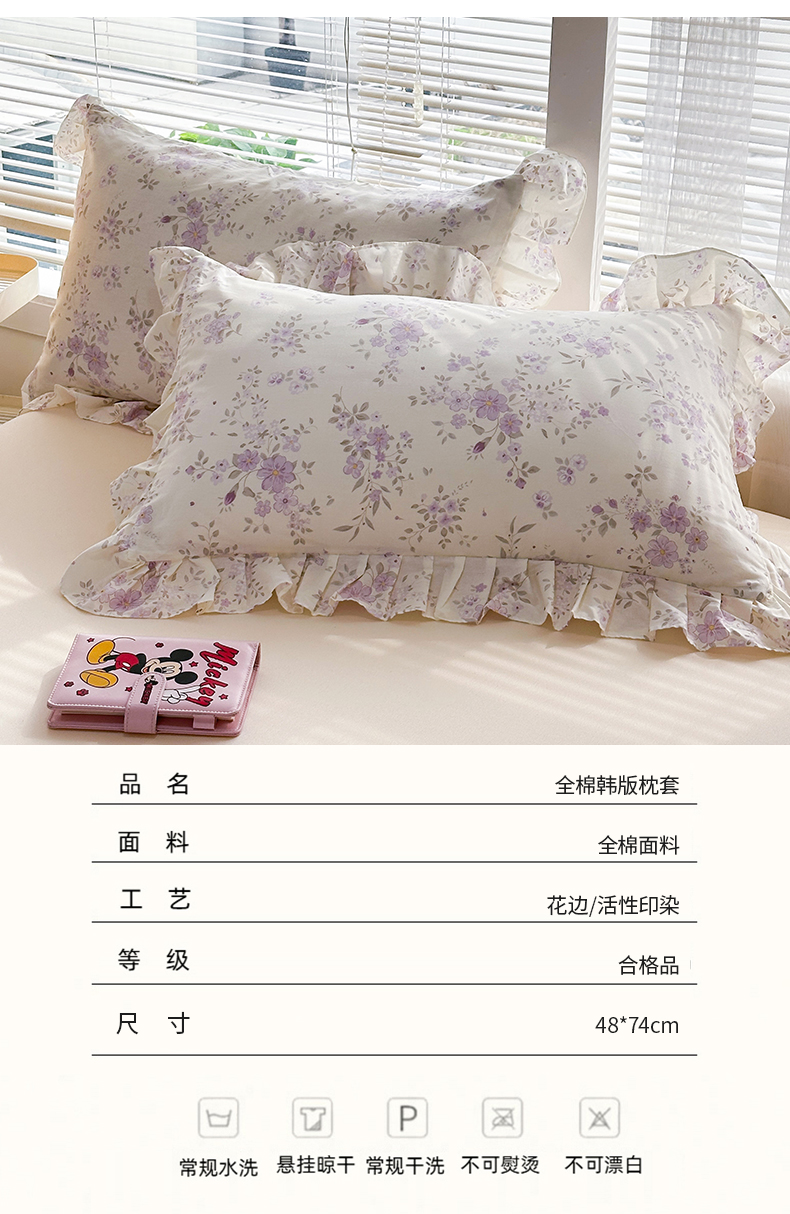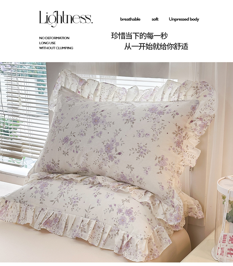 商品名称:忘忧草 2026新款全棉纯棉印花精致花边枕套单枕套 枕套单件 苏林 紫