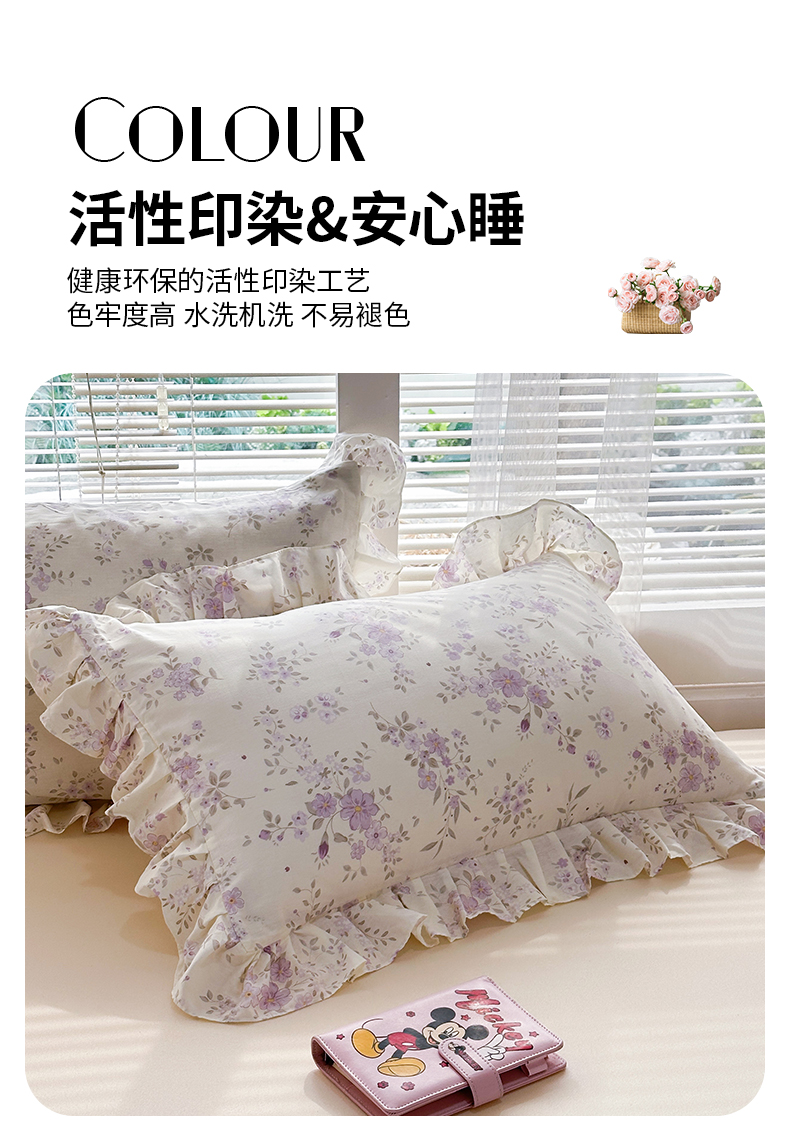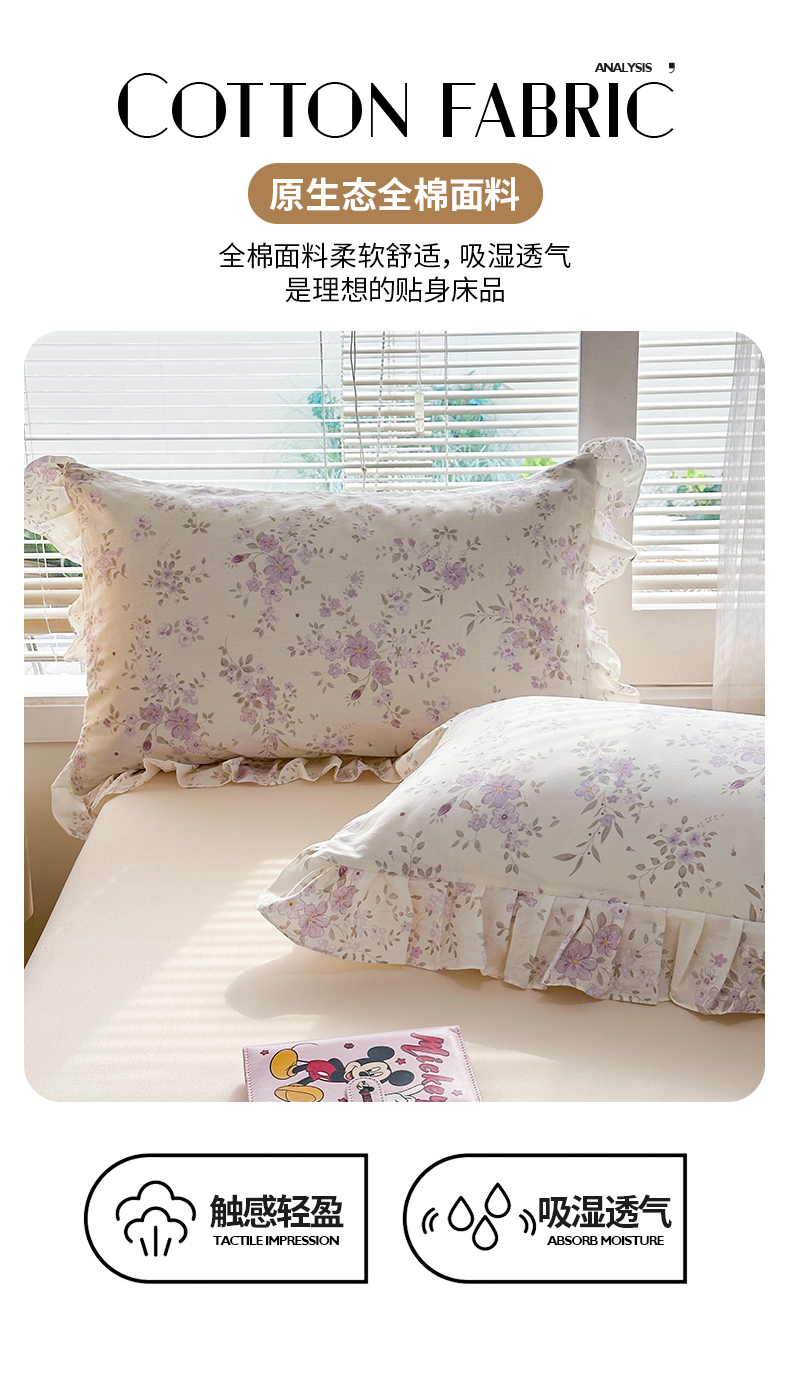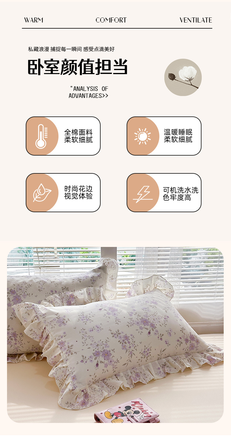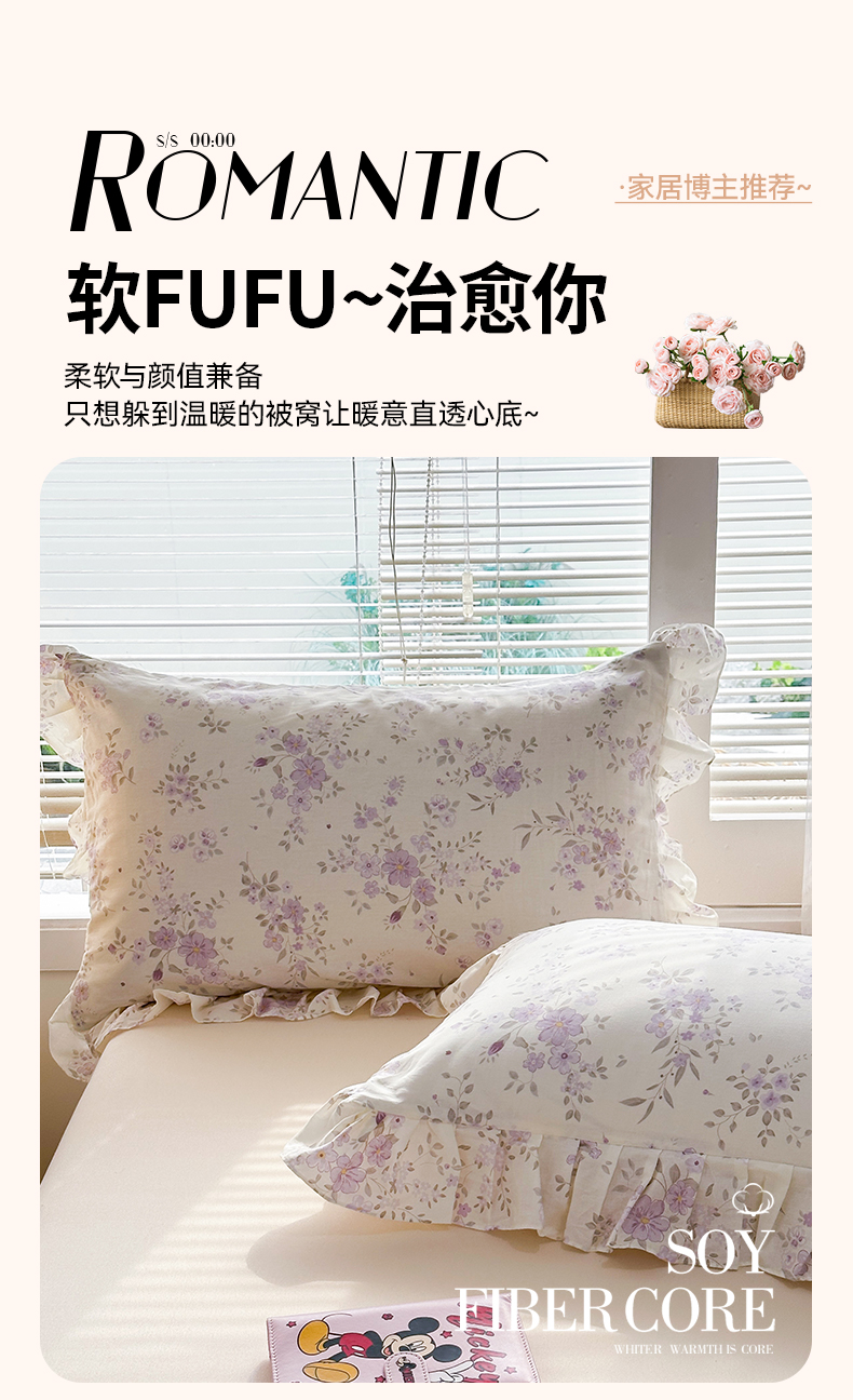 商品名称:忘忧草 2026新款全棉纯棉印花精致花边枕套单枕套 枕套单件 苏林 紫