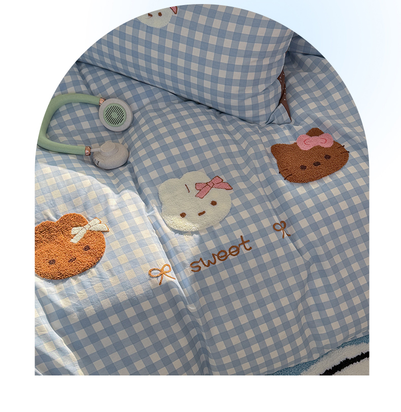 (总)暖生活 2026新款高克重细颗粒羊羔绒牛奶绒毛巾绣四件套,梅梅熊,童年时光-兰,童年时光-米,小短腿