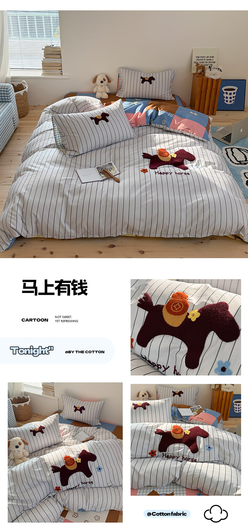 (总)暖生活 2026新款全棉纯棉水洗棉印+绣四件套(会员➖5 改床笠➕10),马上有钱,三只兔喵,汪汪脚印,星星小马,星之家,樱桃小咪