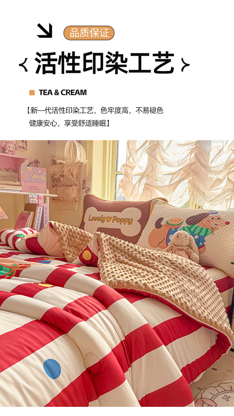(总)宜家坊 2026直播热款A类针织棉豆豆被夏被春秋被空调被儿童学生大版卡通被子被芯,幸运星星,大头贴,粉熊和小鳄,鸿运当头,花仙子,可爱小熊,马内多多粉,兔兔与狗,旺旺人生,小虎鲸,小兔乖乖,要嘛有马,叠拍组合图