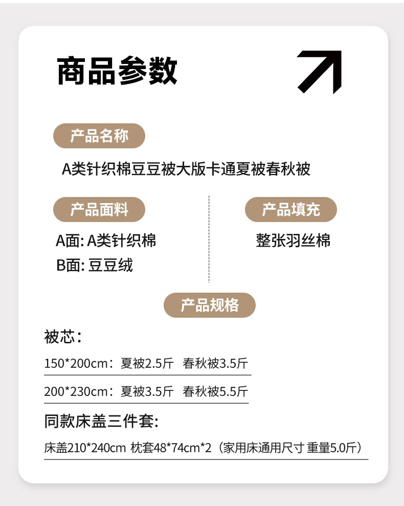 商品名称:宜家坊 2026直播热款A类针织棉豆豆被夏被春秋被空调被儿童学生大版卡通被子被芯 鸿运当头