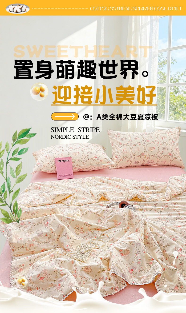 (总)优被业 2025新款A类全棉小清新大豆夏被,KT猫,宁夏,小夜猫,小迷糊,快乐小狗,泡泡糖,草莓园,集美