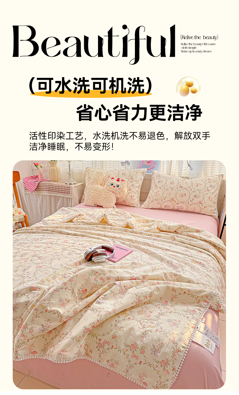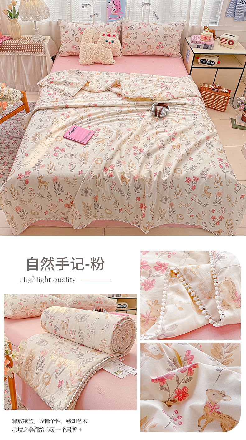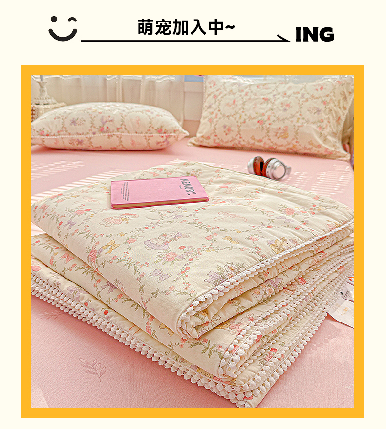 优被业 2026新款全棉韩式小球球款大豆夏被,夏被四件套,空调被(加微信送买家秀) 童话花町