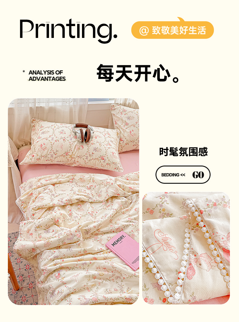 • 91家纺网 家纺一手货源 找家纺 (总)优被业 2025新款全棉韩式小碎花花边夏被全棉夏凉被空调被,艾米丽,爱莲娜,半月时光,初暖,卡米洛,里约小熊,梦蝶,莫奈,桃之夭夭,夕颜花开,萱草花,油画草莓