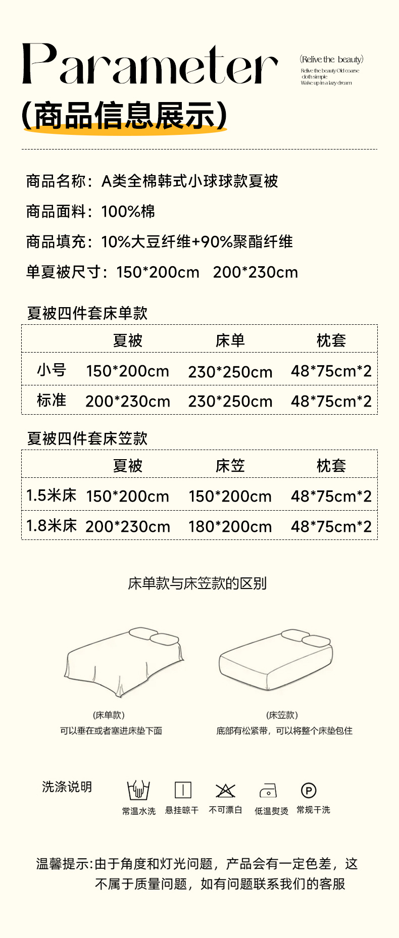 • 91家纺网 家纺一手货源 找家纺 优被业 2026新款全棉韩式小球球款大豆夏被,夏被四件套,空调被(加微信送买家秀) 童话花町