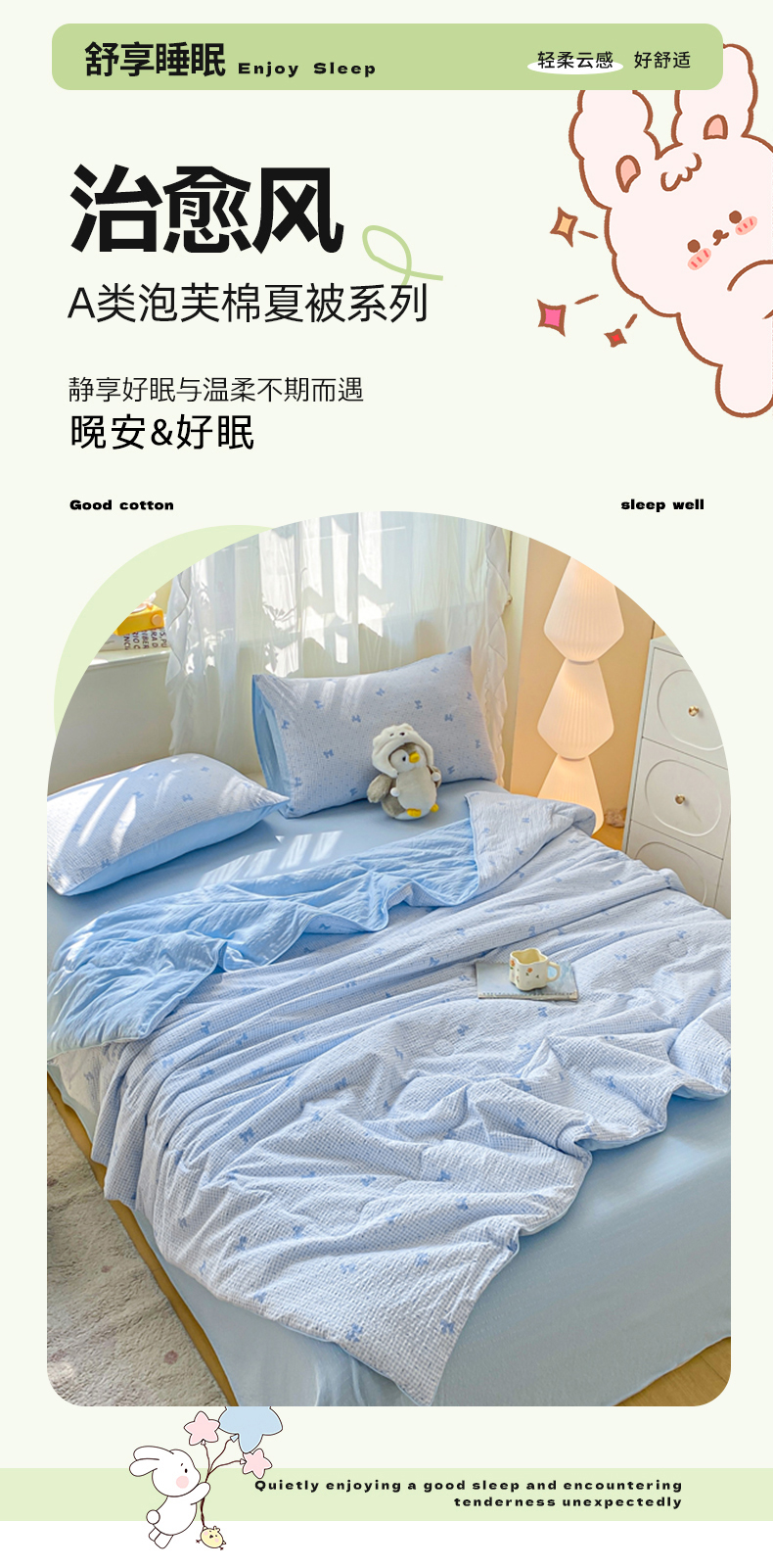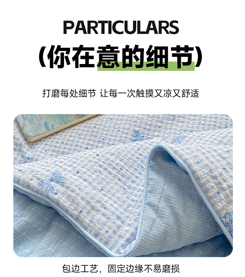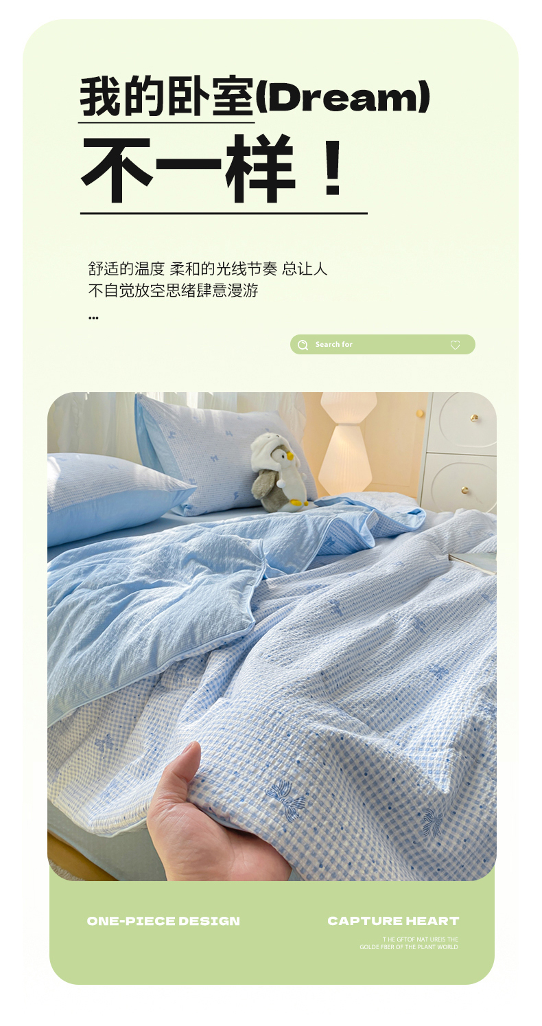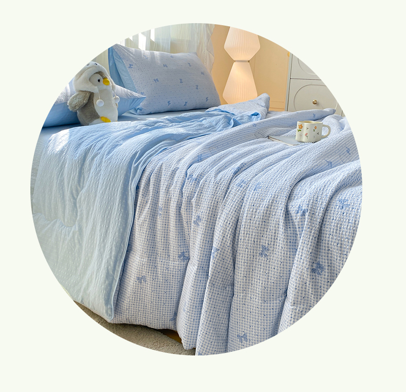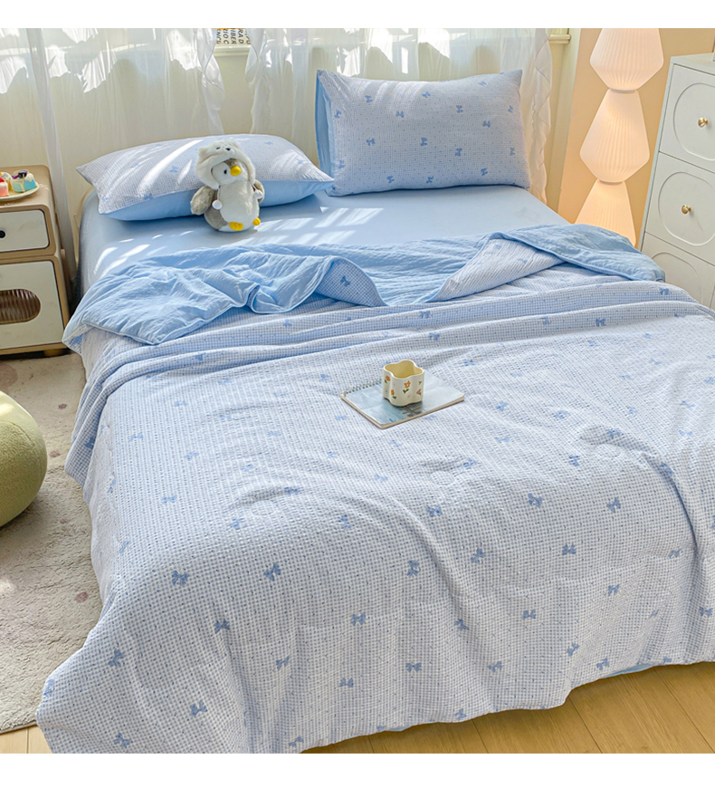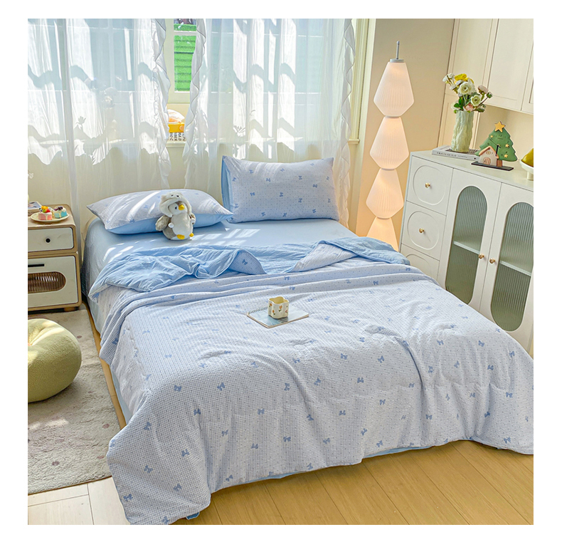• 91家纺网 家纺一手货源 找家纺 爱屋及屋 2026新款泡芙棉夏被夏凉被空调被四件套 蝴蝶结蓝格