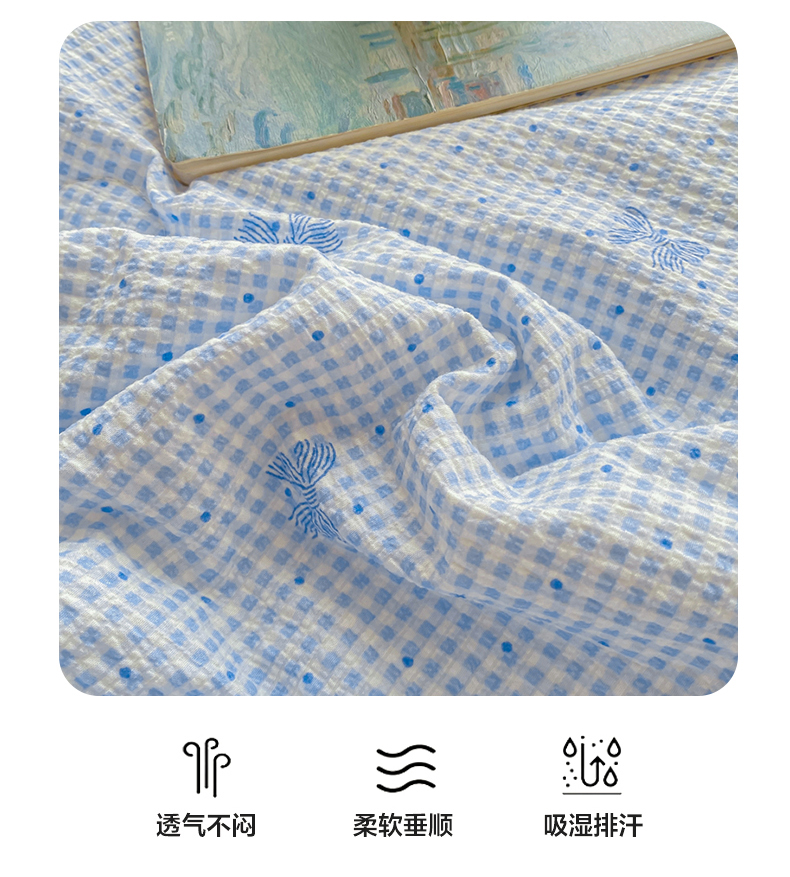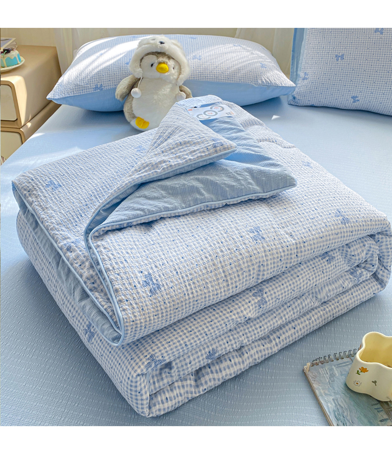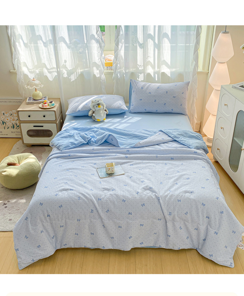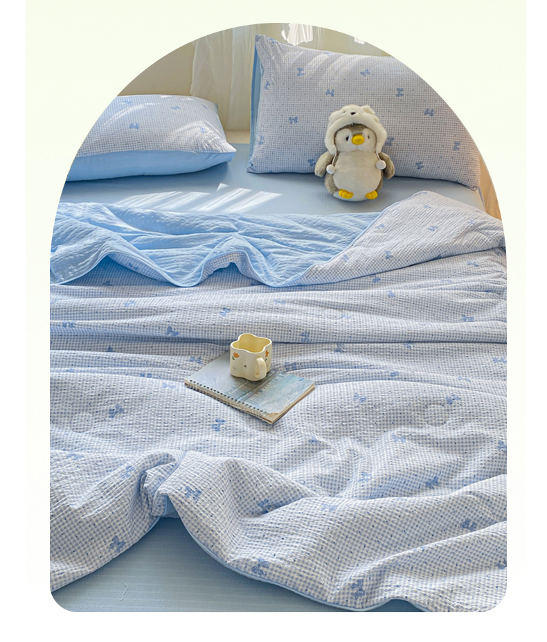 当前位置: 91家纺网 > 商品网购 > 被子 > 夏被 > 爱屋及屋 2026新款泡芙棉夏被夏凉被空调被四件套 蝴蝶结蓝格