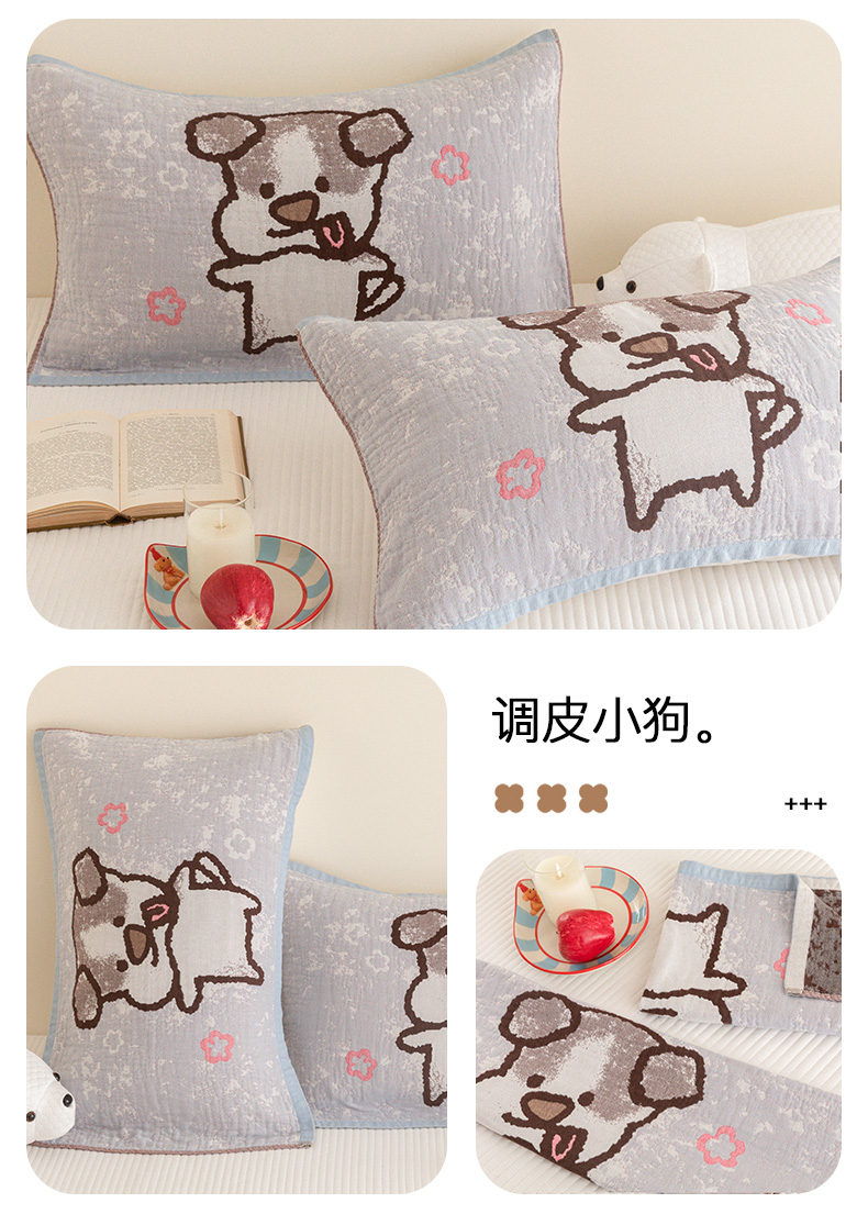 商品名称:乐家毛巾被(工厂自产自销) 2026新款四层色织全棉提花纱布软萌枕巾 长耳狗