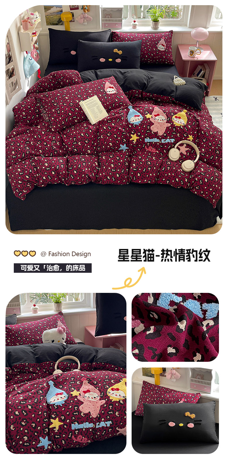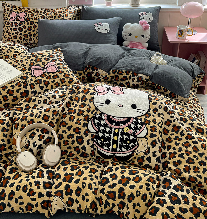 当前位置: 91家纺网 > 商品网购 > 床品套件 > 四件套 > 毛巾绣四件套 > 花伞家居 2026新款皱皱纱毛巾绣豹纹喵四件套含买家秀 星星猫-灰豹纹