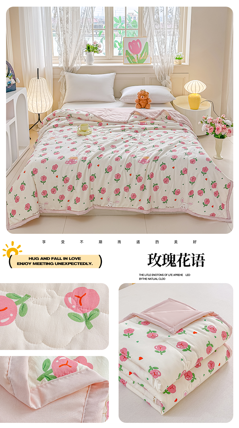 爱宝被业 2026新款A类水洗棉新疆棉花夏被夏凉被玫瑰花语