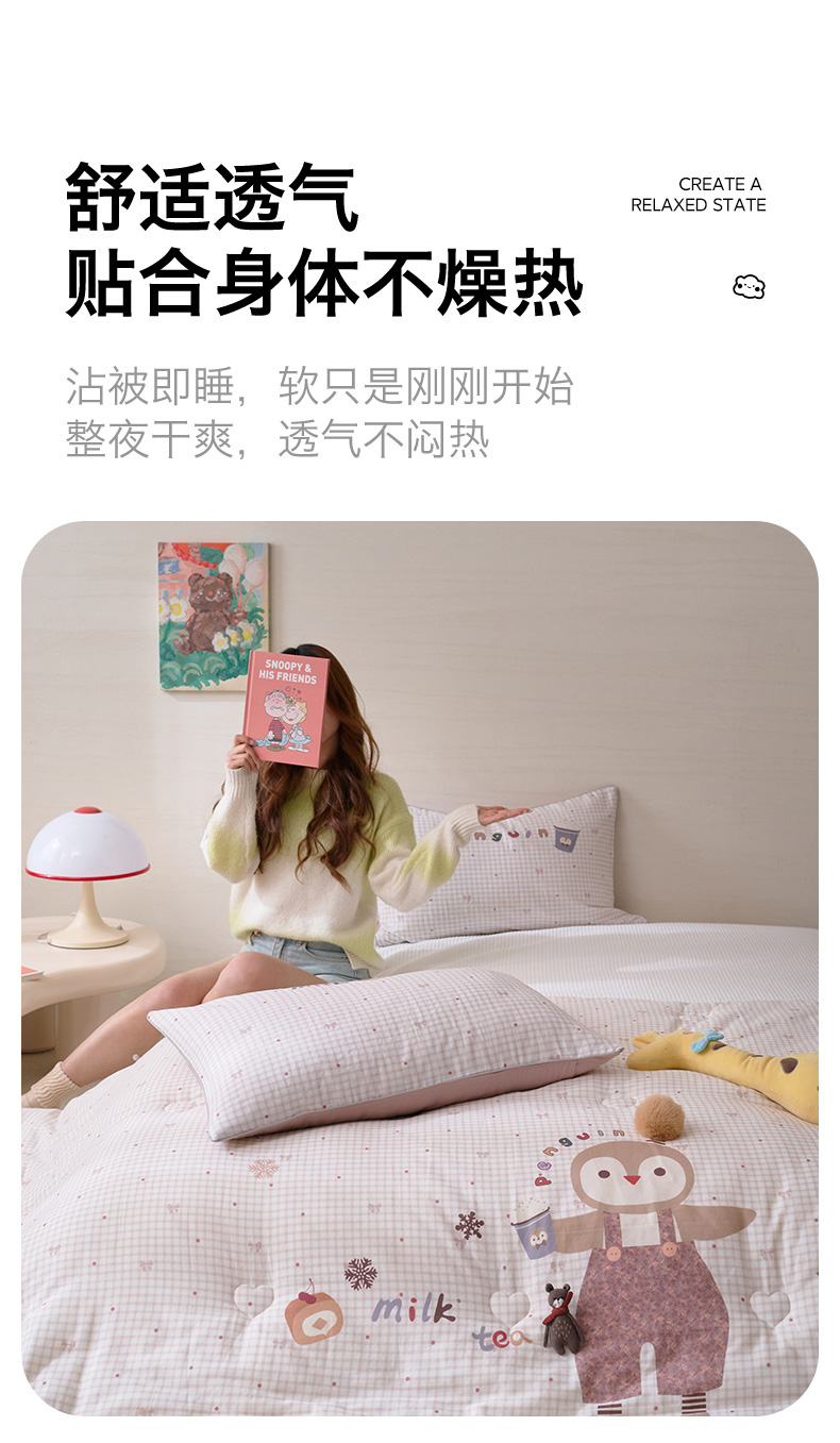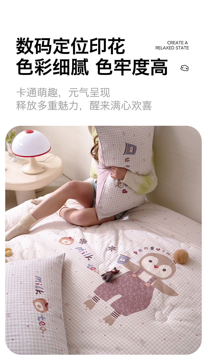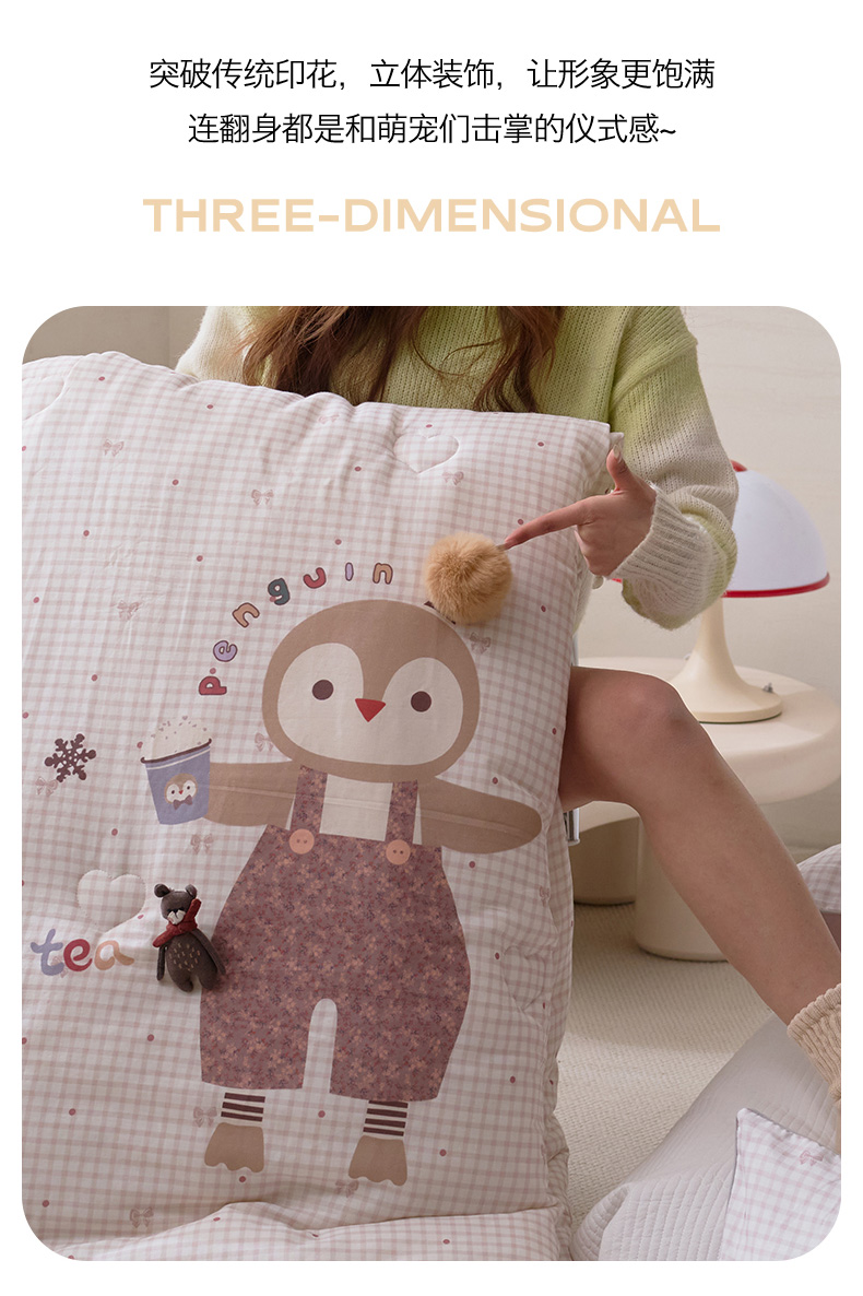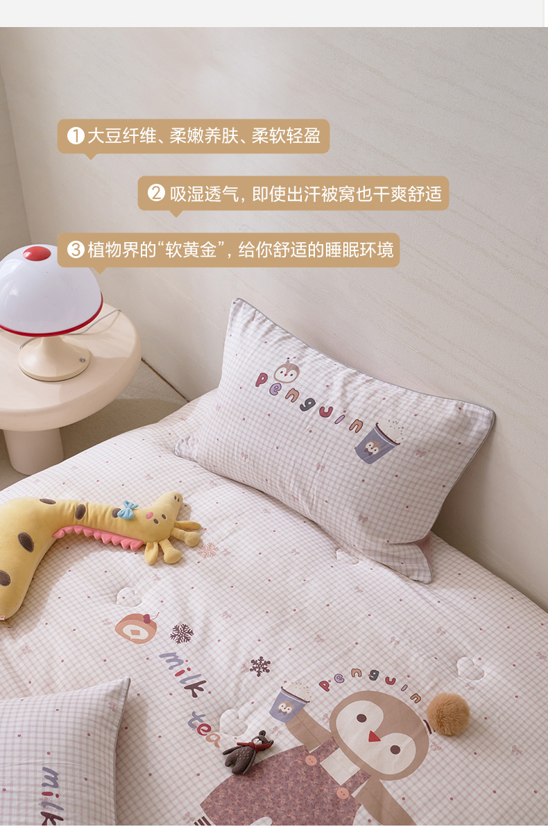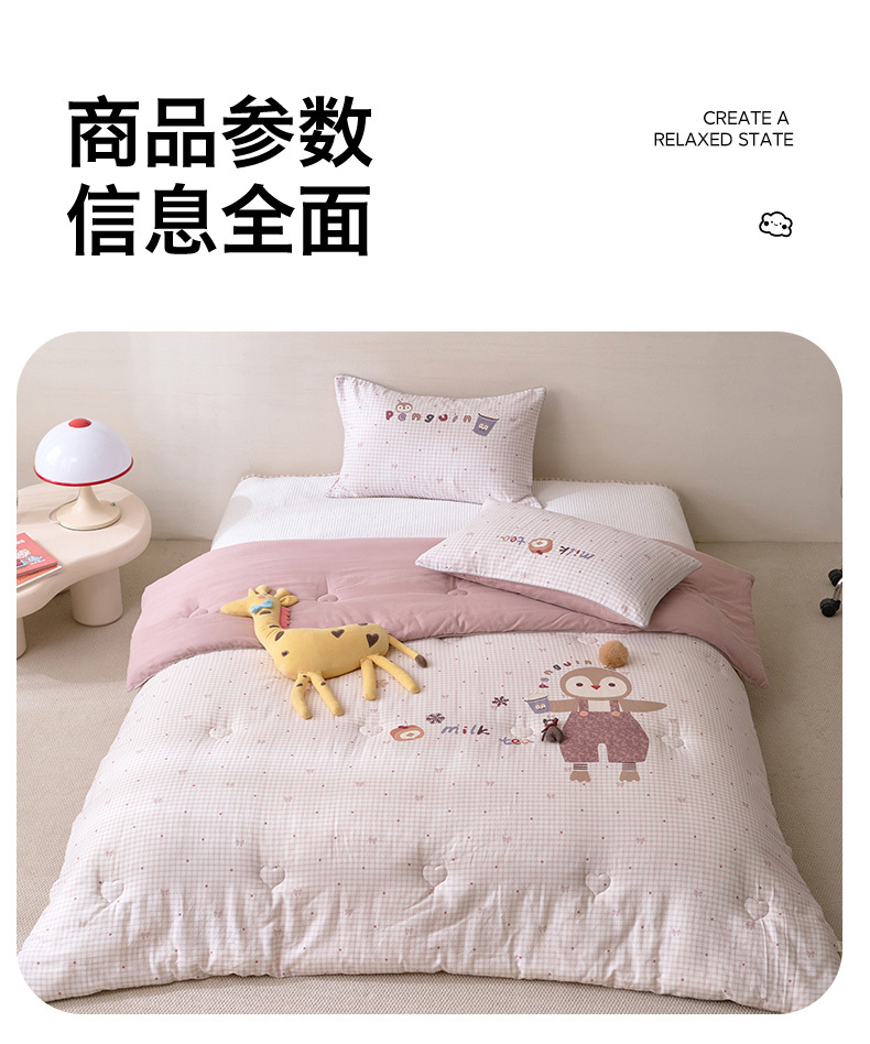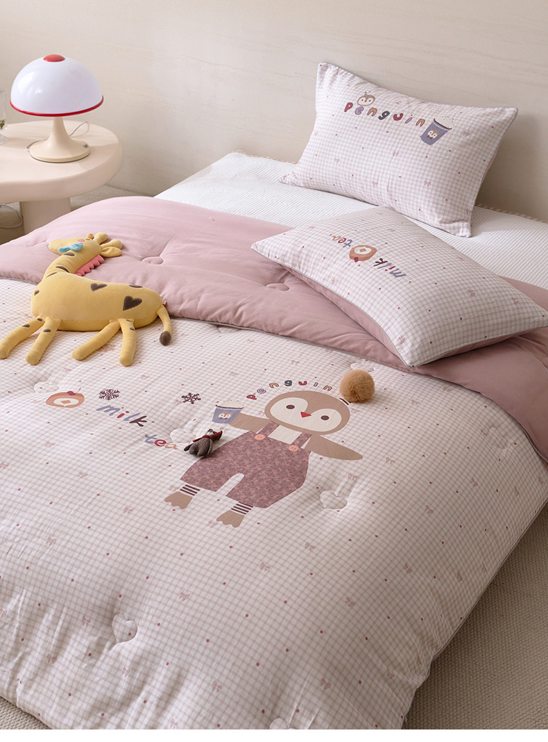 商品名称:久典家居 2026新款A类全棉双层纱数码定位花型春秋被夏被 小企鹅