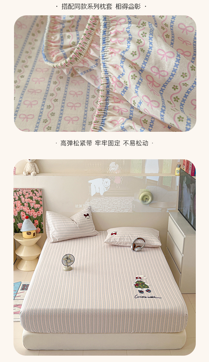 (总)舒居家纺 2026春夏新款夹棉防水印花单床笠 床笠单件,奥利奥小熊,小波点,丝带飞飞兔,靠谱小狗,小猫逃离季,小猫线球,慢生活,奶猫,心跳回声,圆镜兔,组合图仅供展示不可下单