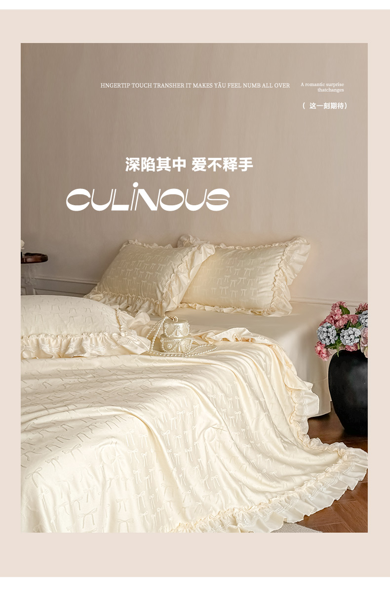 (总)迪梦姿家纺 2026新款春意真丝提花蕾丝款夏被四件套,豆沙,粉玉,抹茶绿,奶白,天空兰,香槟