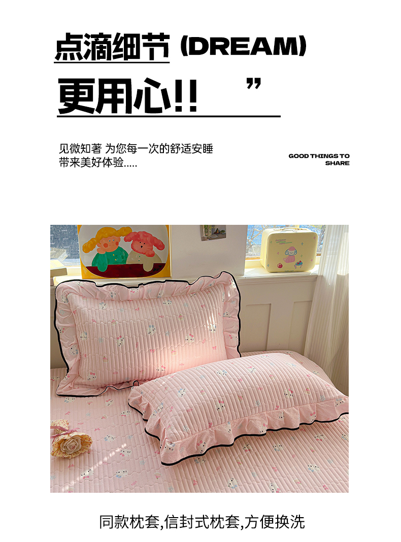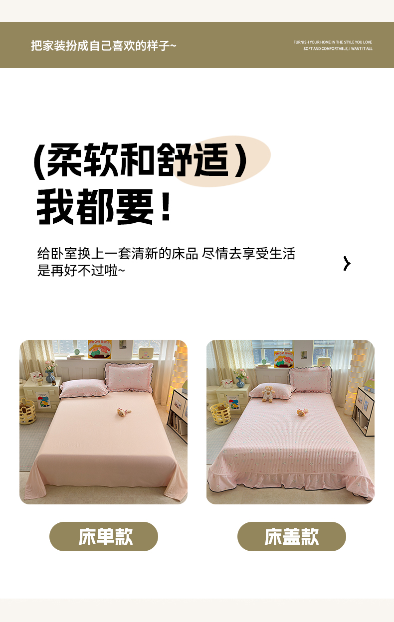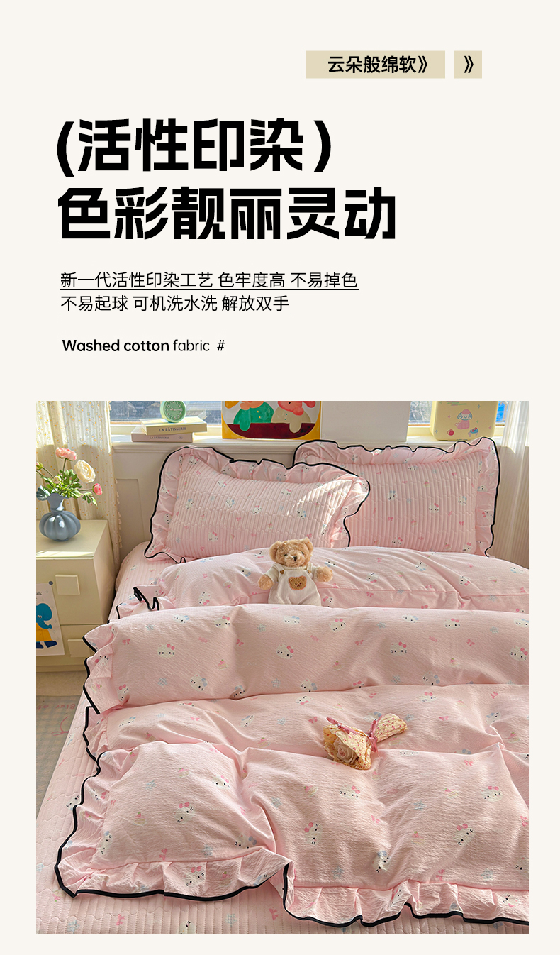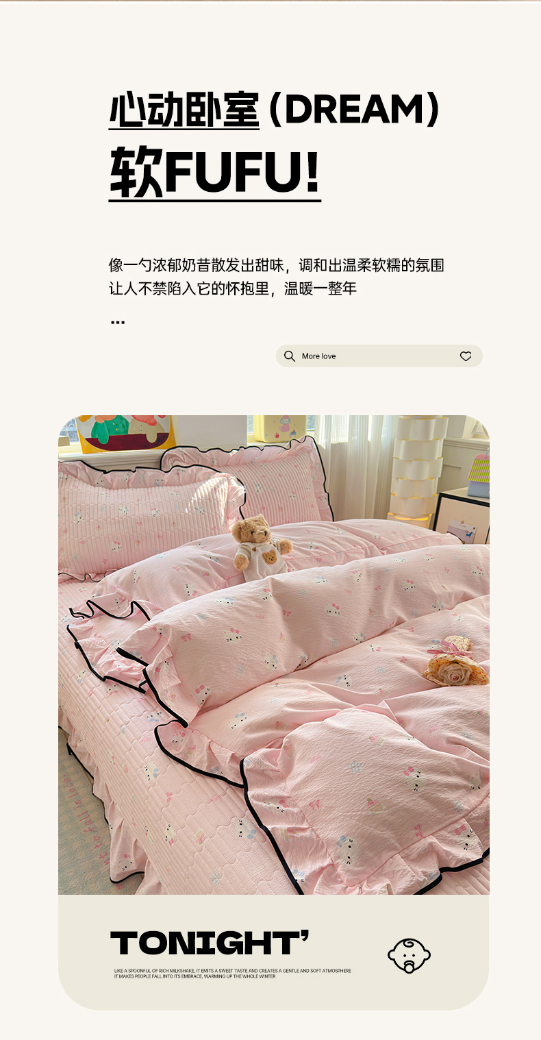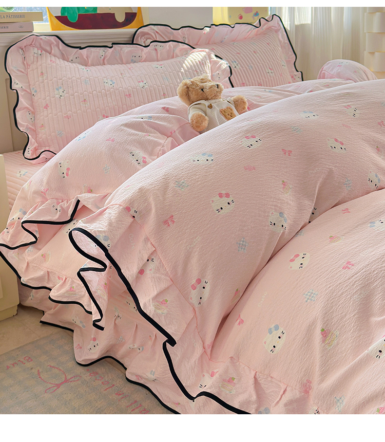 当前位置: 91家纺网 > 商品网购 > 床品套件 > 四件套 > 其它四件套 > 壹和 2026新款A类云感花边款双层纱床盖款和床单款四件套单床盖单被套 粉雾猫咪