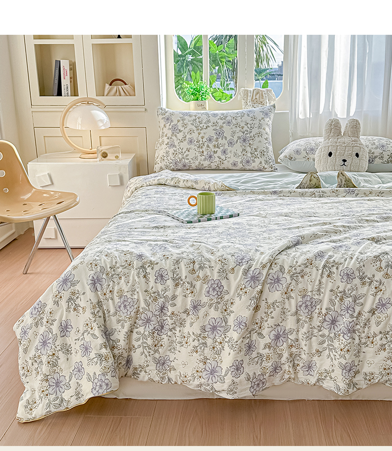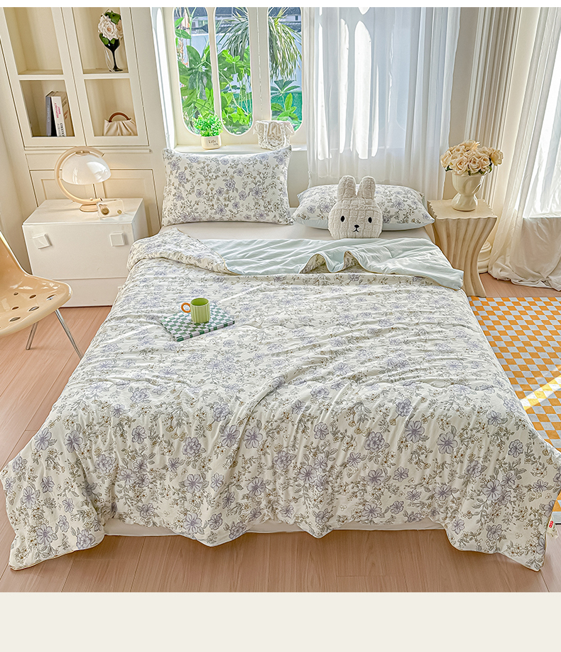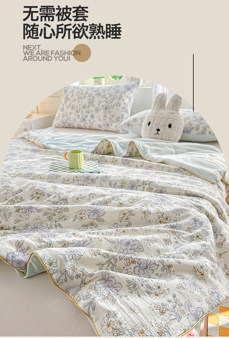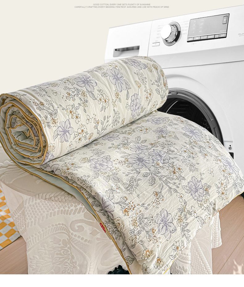 商品名称:招财星家纺 2026新款A类水洗棉皱绉纱夏被空调被印花夏凉被子被芯(带质检报告买家秀) 静谧花园