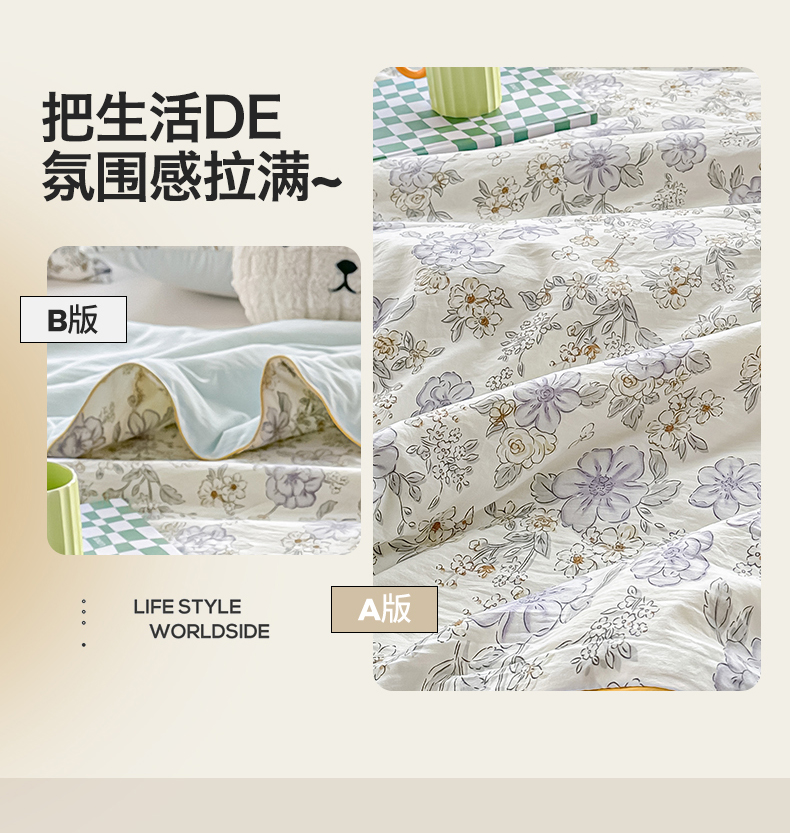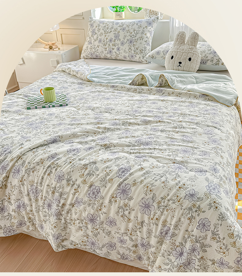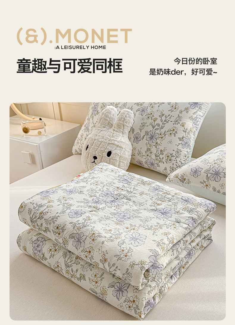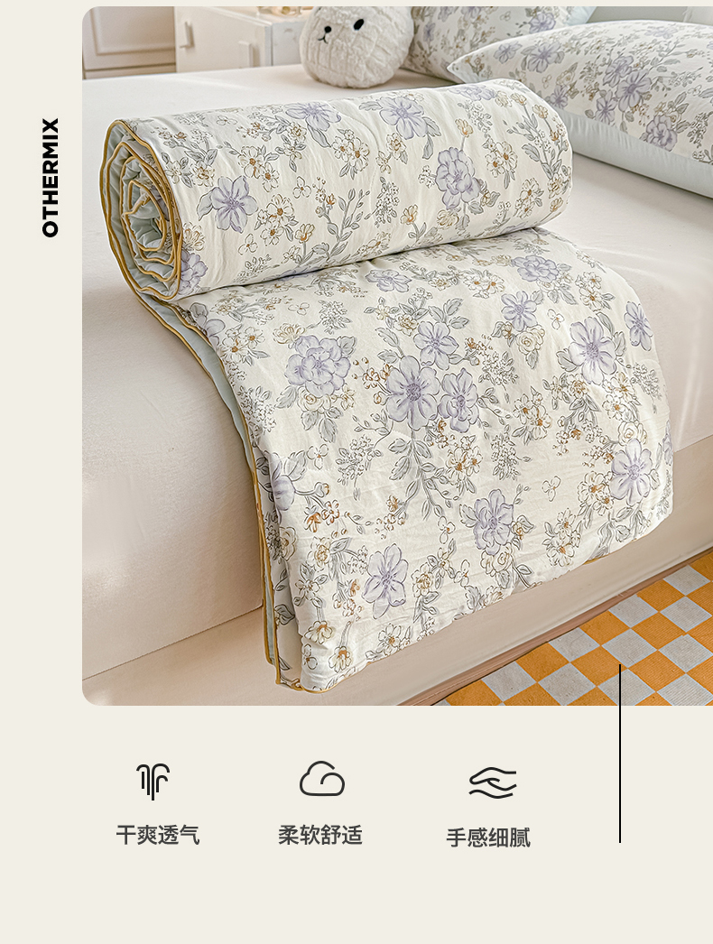 商品名称:招财星家纺 2026新款A类水洗棉皱绉纱夏被空调被印花夏凉被子被芯(带质检报告买家秀) 静谧花园