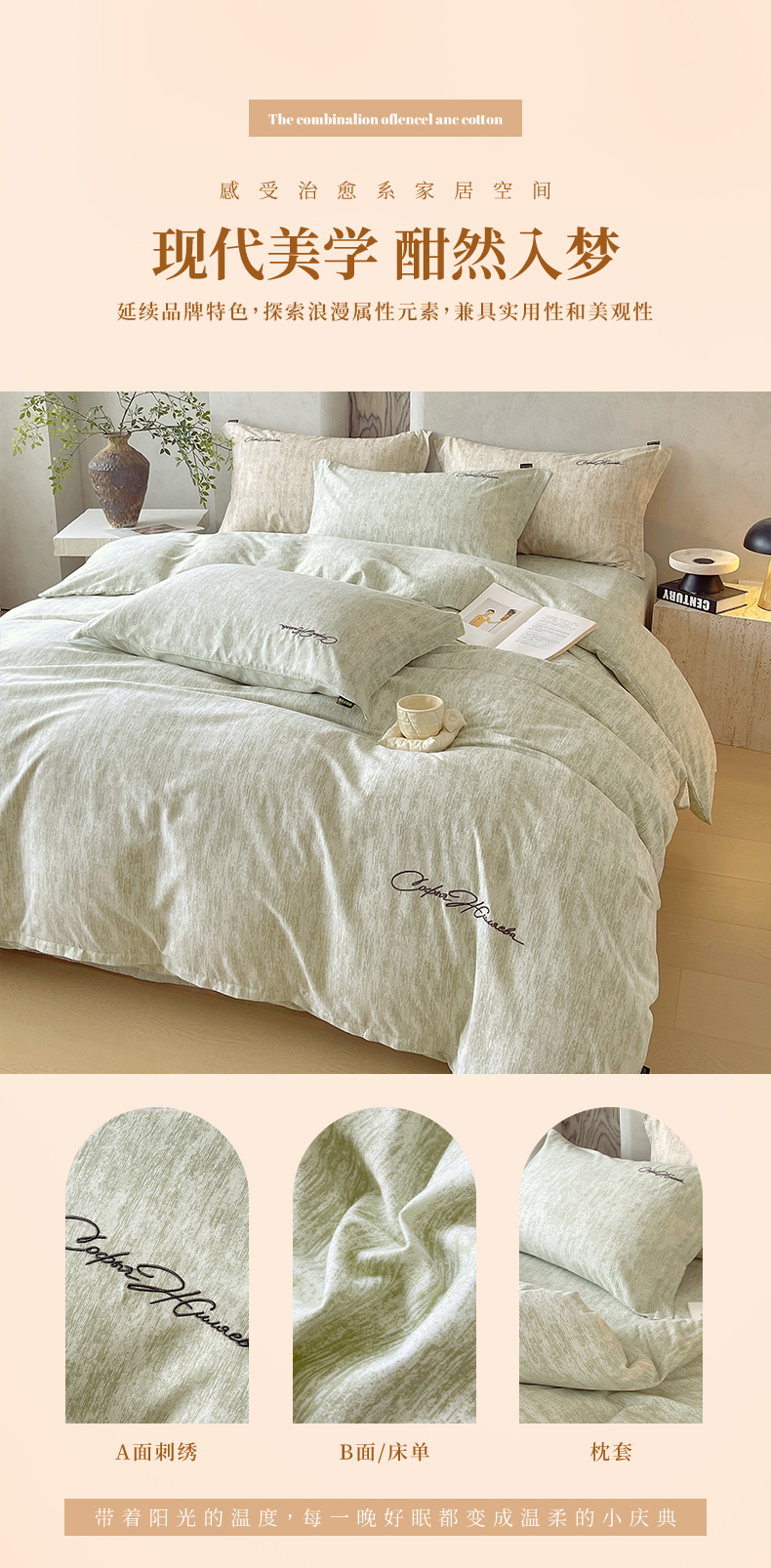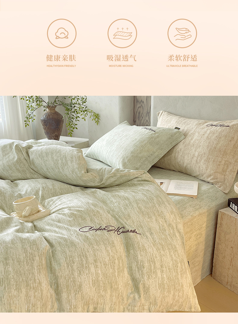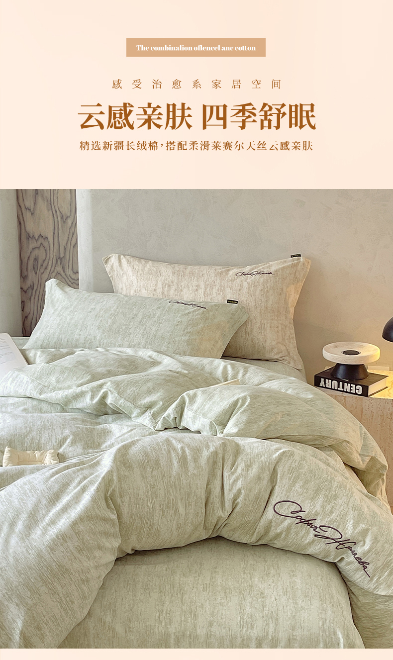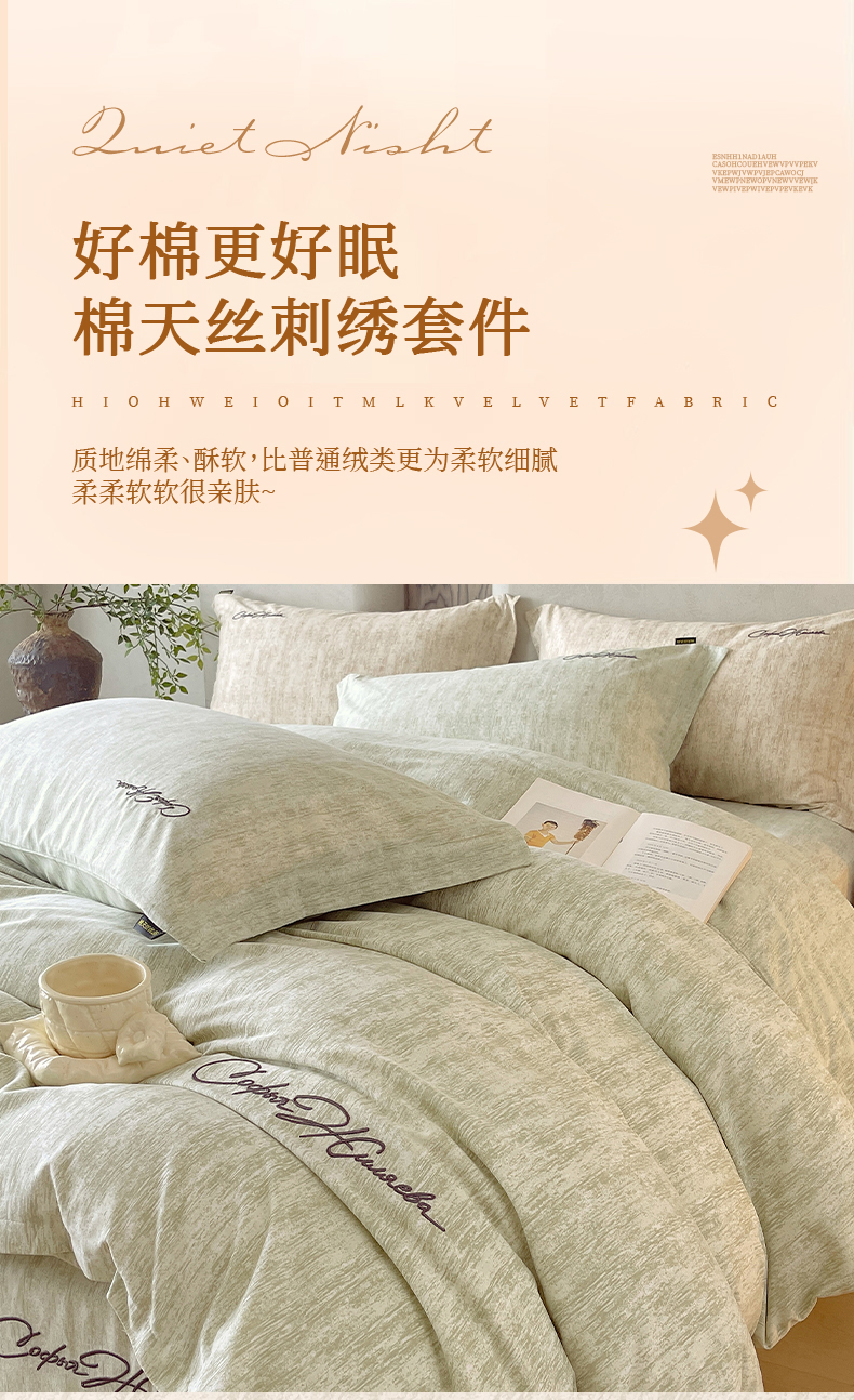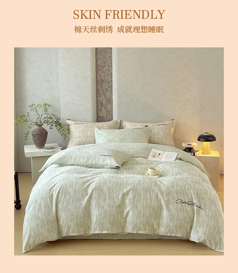 当前位置: 91家纺网 > 商品网购 > 床品套件 > 四件套 > 其它四件套 > 春皖家纺 2026春夏新款天丝棉刺绣四件套 苔绮绿