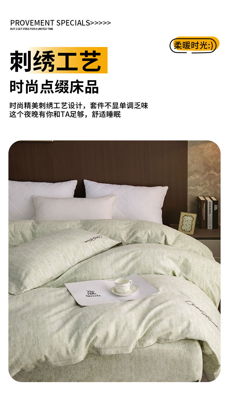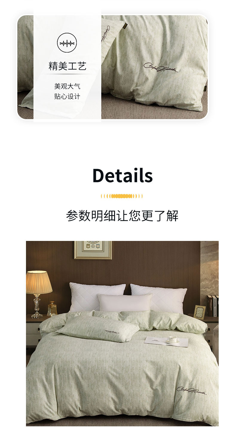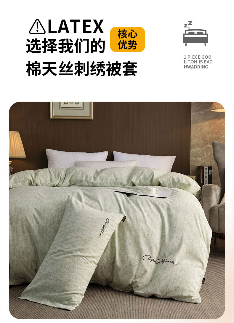 商品名称:春皖家纺 2026春夏新款天丝棉刺绣单被套 被套单件 苔绮绿