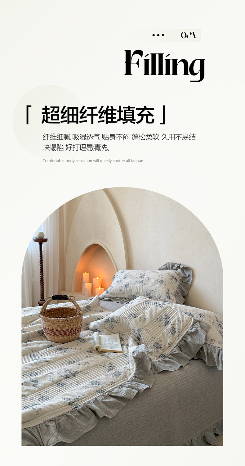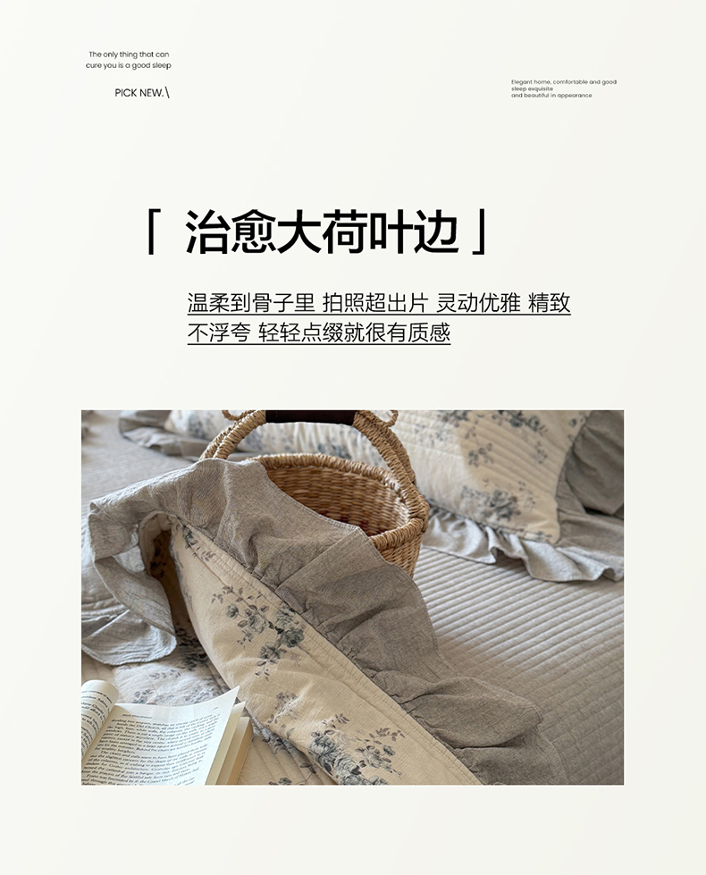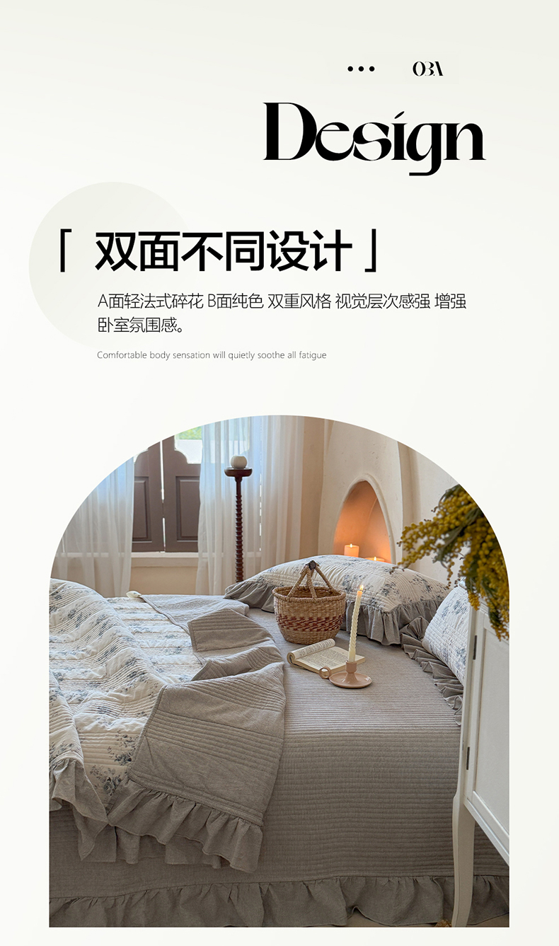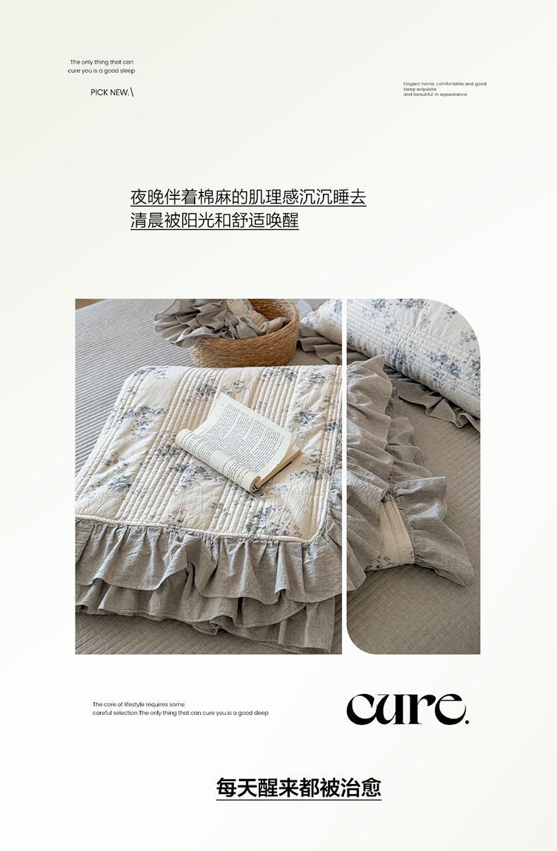 (总)漫调家纺 2026春夏新品双面棉麻法式荷叶边高温水洗夏被可配夏被四件套床单床盖四件套(夏被四件套咨询微信),粉雾花甸,蓝雾花影,奶杏枝蔓,青枝野果,组合