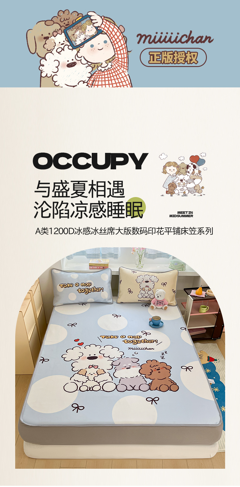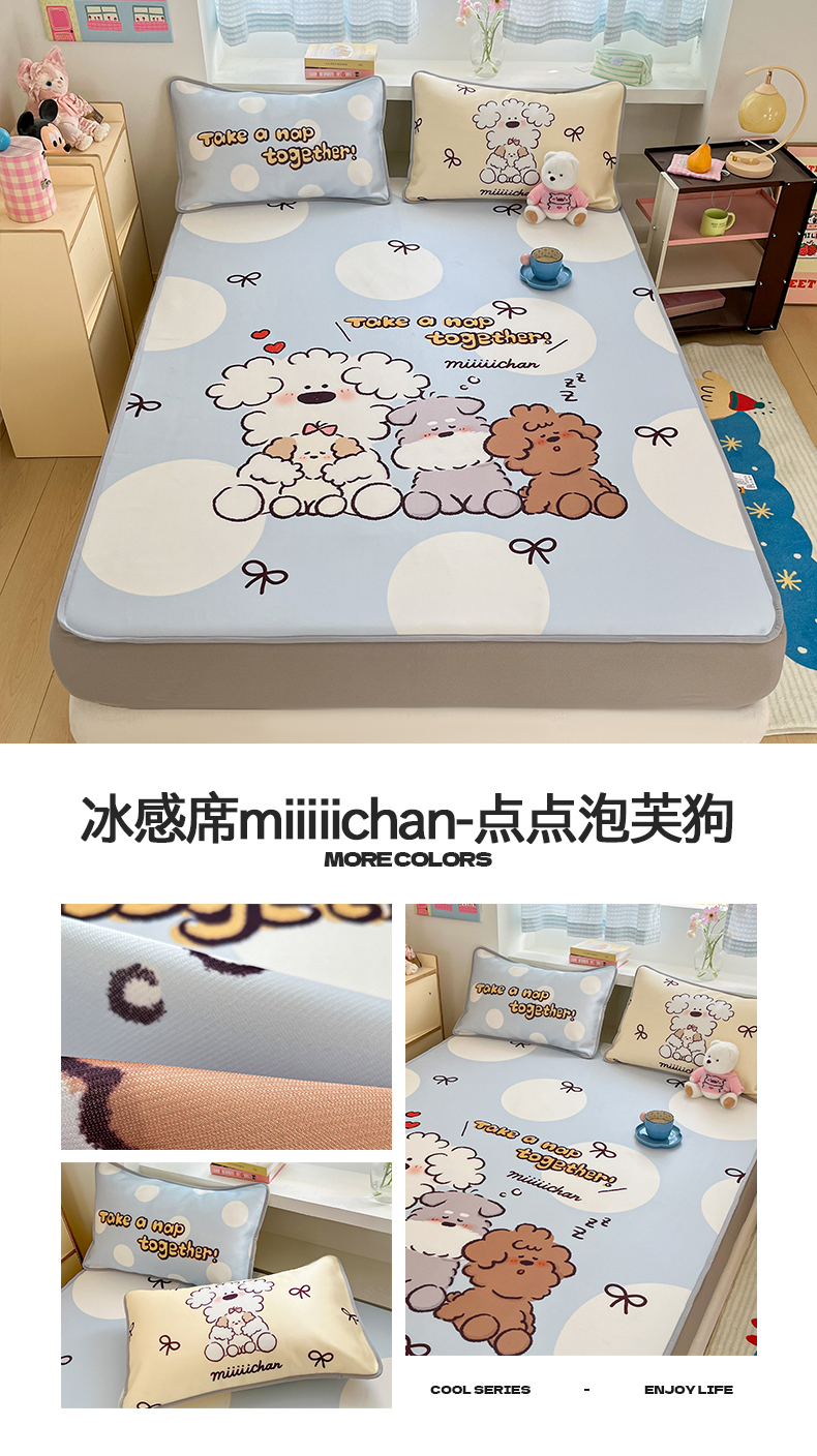 (总)桃子家居 2026新款正版授权miiiiichan大版数码印花1200D凉席三件套平铺床笠,冰感席miiiiichan-点点泡芙狗,冰感席miiiiichan-狗狗乐园,冰感席miiiiichan-蓝色波点熊,冰感席miiiiichan-绿彩色波点狗,冰感席miiiiichan-俏皮小狗,冰感席miiiiichan-曲奇贪吃熊,冰感席miiiiichan-星愿小狗