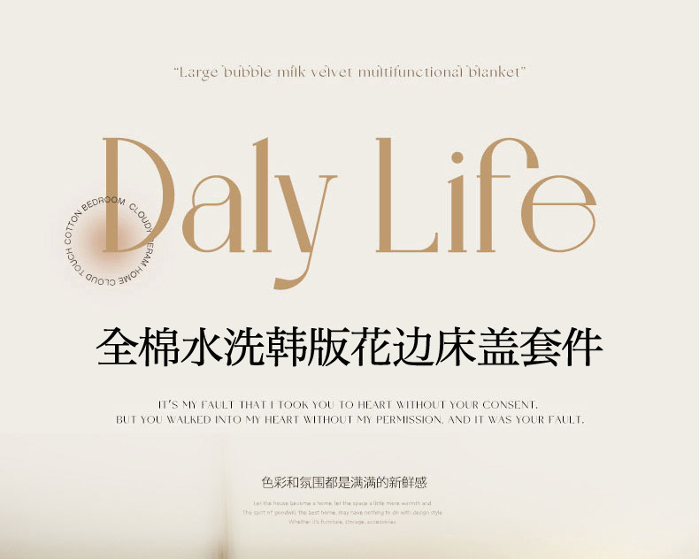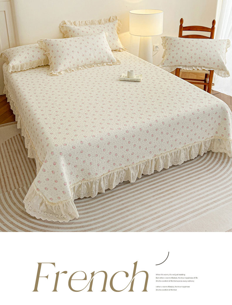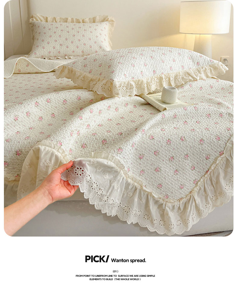 当前位置: 91家纺网 > 商品网购 > 床品套件 > 四件套 > 全棉普通四件套 > 羽爱家纺 2026新款全棉水洗韩版花边床盖四件套 海盐繁花