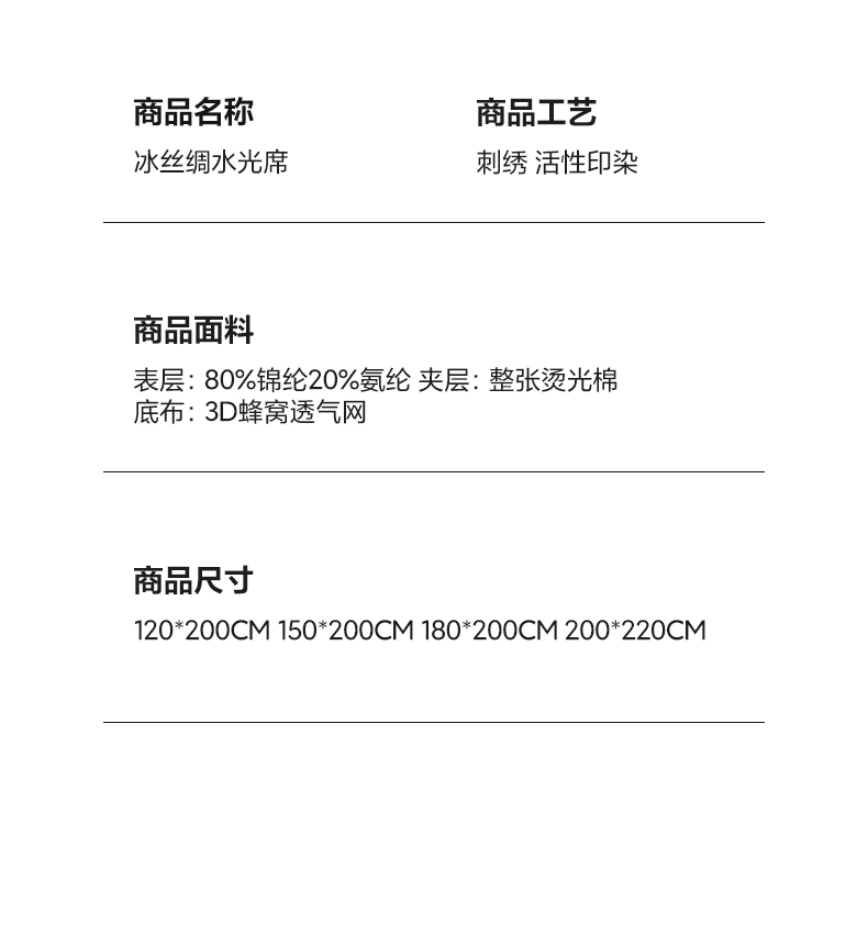 180x200cm单凉席 | ¥105.00 |