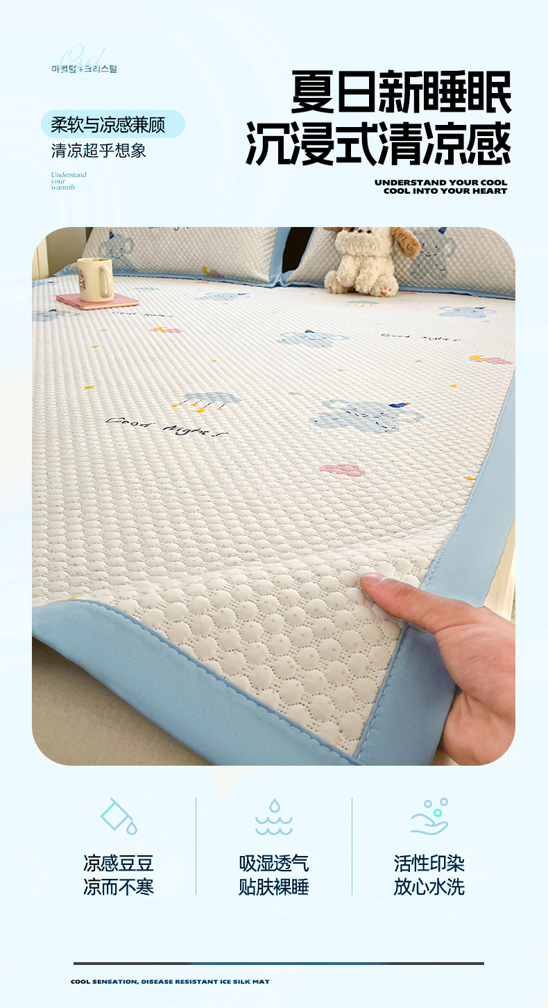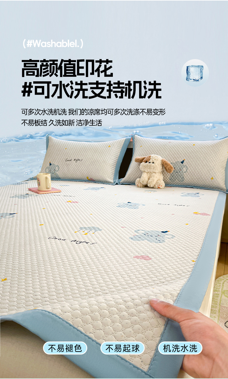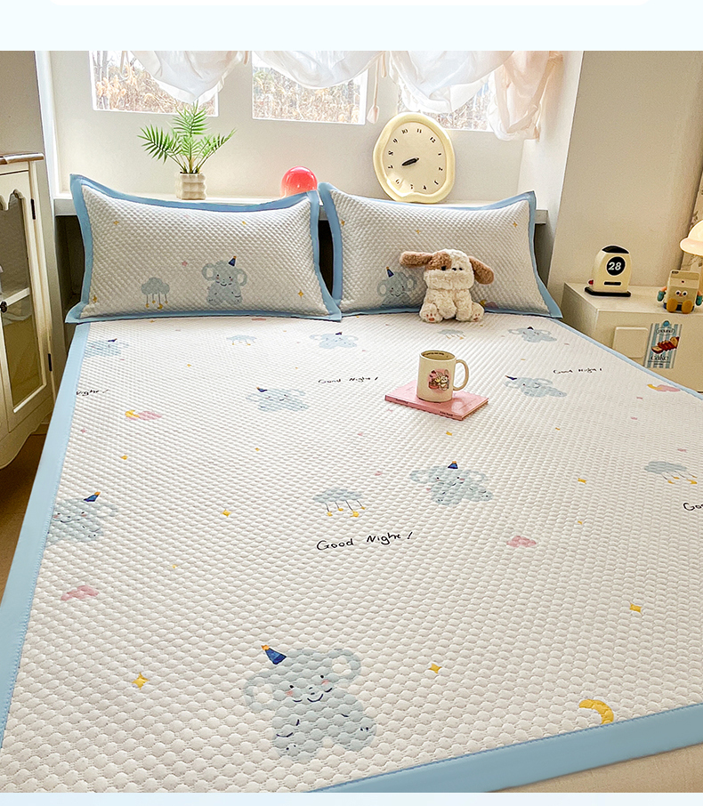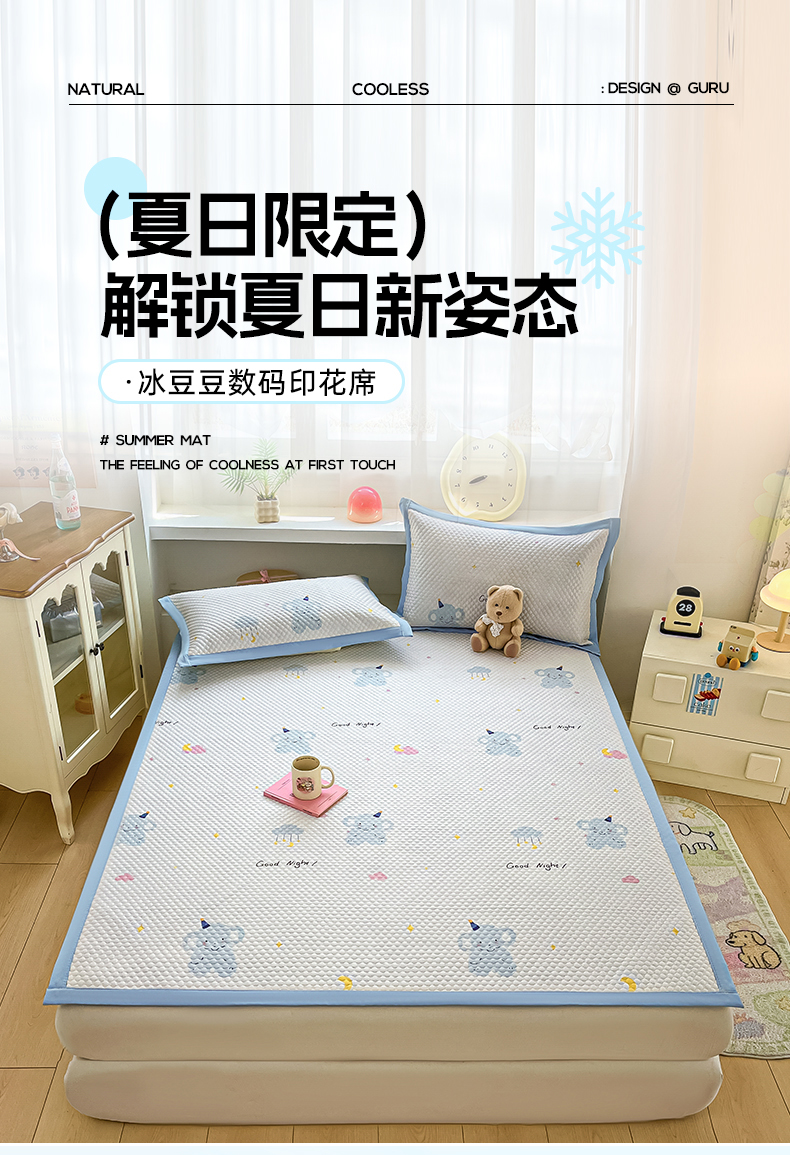 (总)蓝极人 2026新款小清新冰豆豆数码印花席三明治底席子凉席