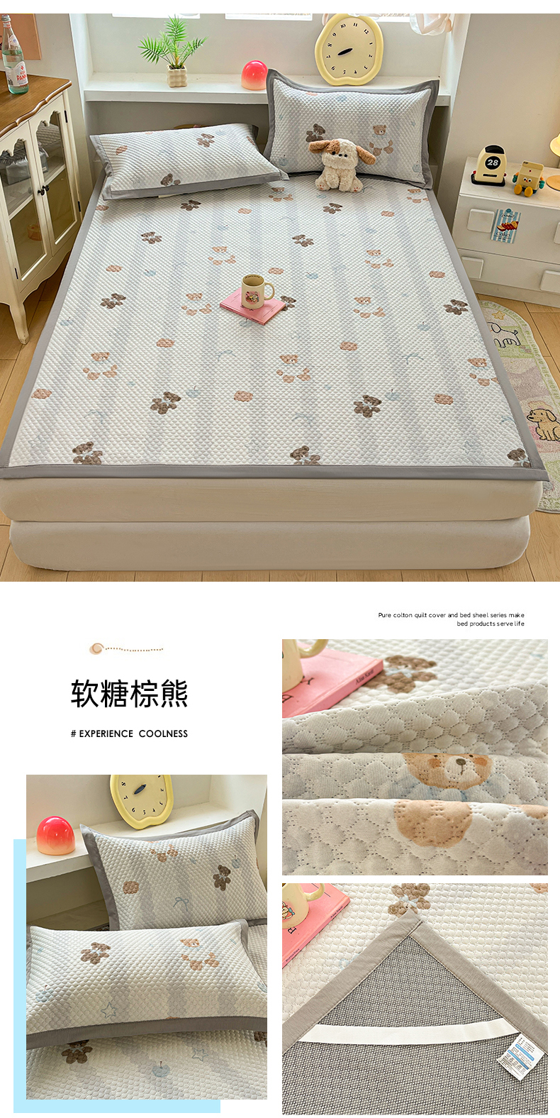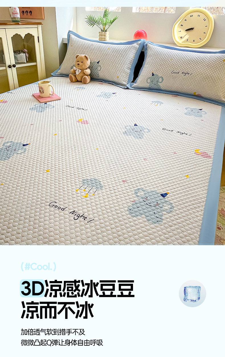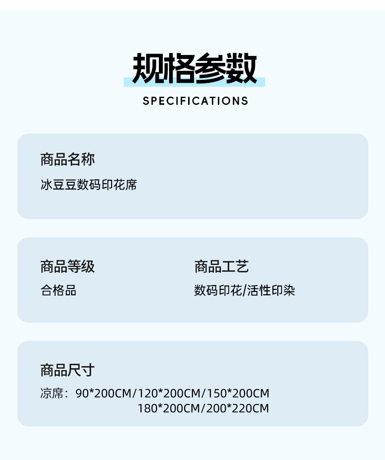 商品名称:(总)蓝极人 2026新款小清新冰豆豆数码印花席三明治底席子凉席