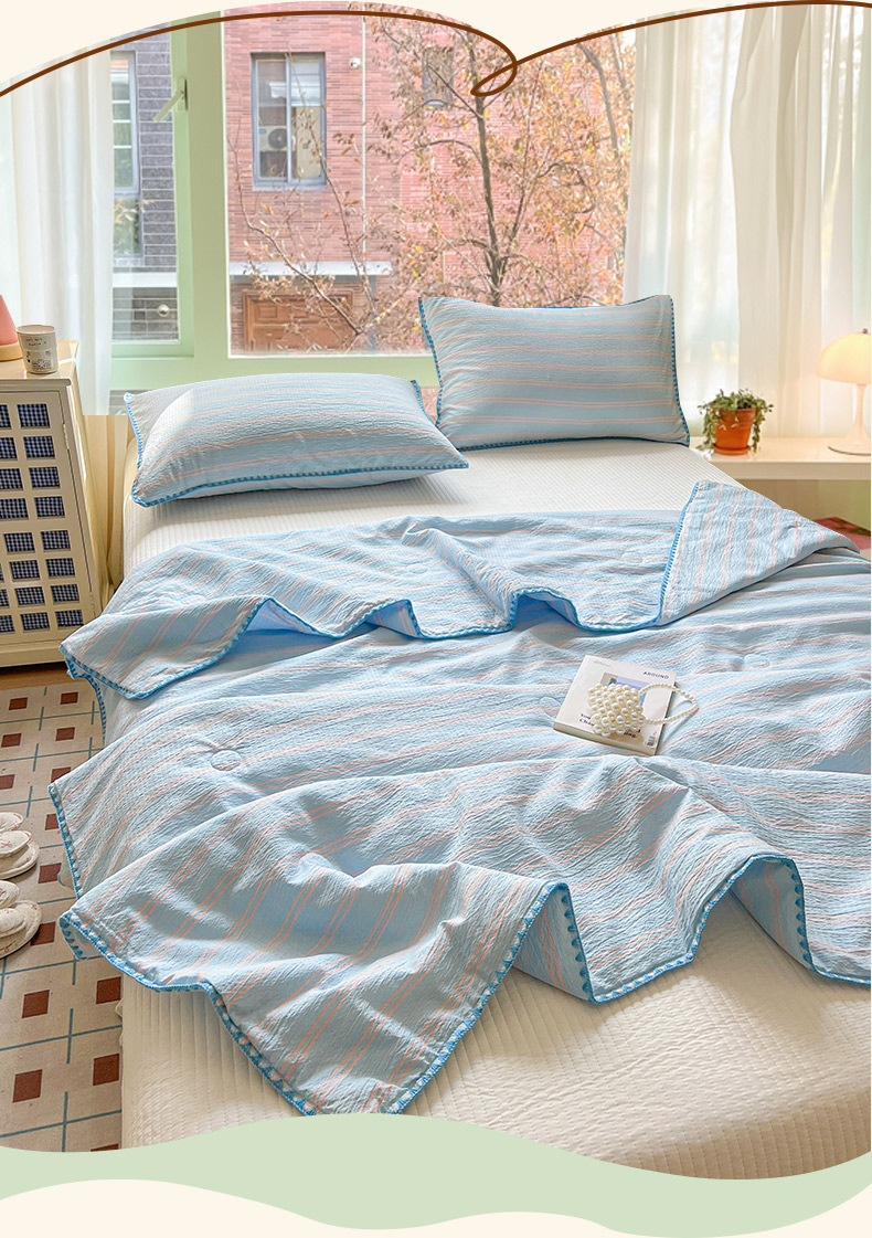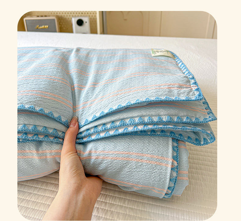 鑫利来家纺 2026新款日系多巴胺皱皱纱贝壳绣夏被夏凉被空调被 春染-清蓝